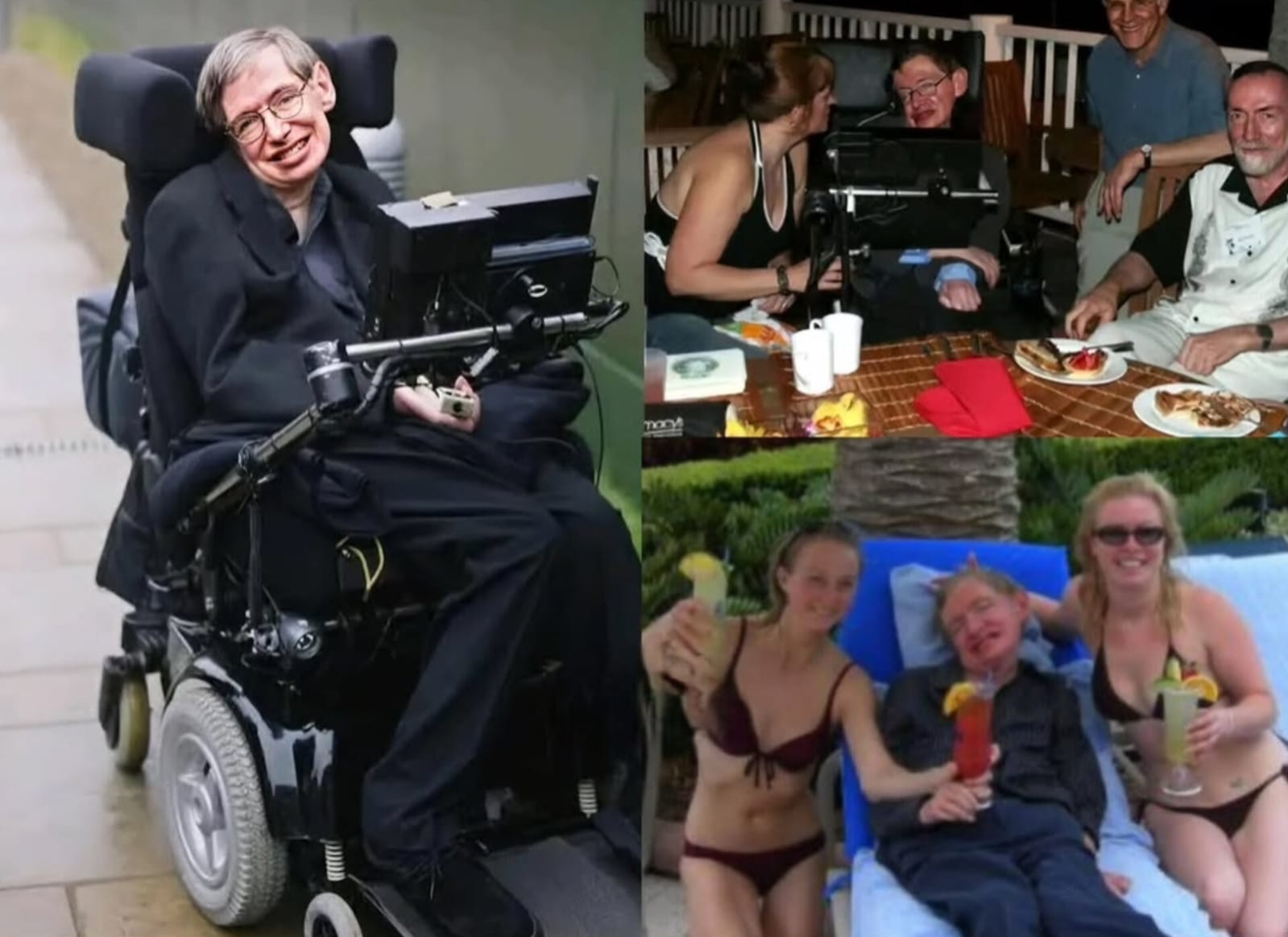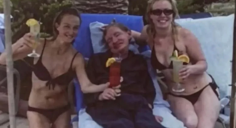 根據《紐約郵報》及《華爾街日報》等外電報道,司法部發放的文檔中,一張引起網民瘋傳的照片顯示,患有肌萎縮性脊髓側索硬化症(ALS,俗稱漸凍人症)的霍金,當時躺在海灘椅上,身旁有兩名身穿黑色比基尼的女子。照片中的霍金面帶微笑,在女子協助下握着一杯紅色雞尾酒,神情顯得相當愜意,引起關注。