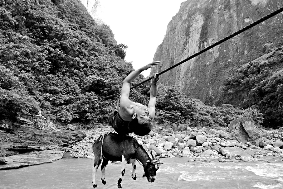 「阿布洛哈」在彝語中意為「人跡罕至之地」,村莊坐落在川、滇兩省三縣交界的金沙江大峽谷深處,一面朝江臨崖、三面環繞着海拔3,000米以上的高山,距離涼山州州府西昌市有150多公里。由於歷史和自然原因,阿布洛哈村此前一直沒有對外出行通道,村民們出村只有兩條路:一條路是往上爬,翻越垂直落差千餘米的盤山小道;另一條路是朝下走,通過50多米長的溜索跨河到對岸,再徒步幾小時走到公路。無論往上爬還是朝下走,都可謂「步步驚心」,因此有的村民甚至一輩子都沒有走出過大山。