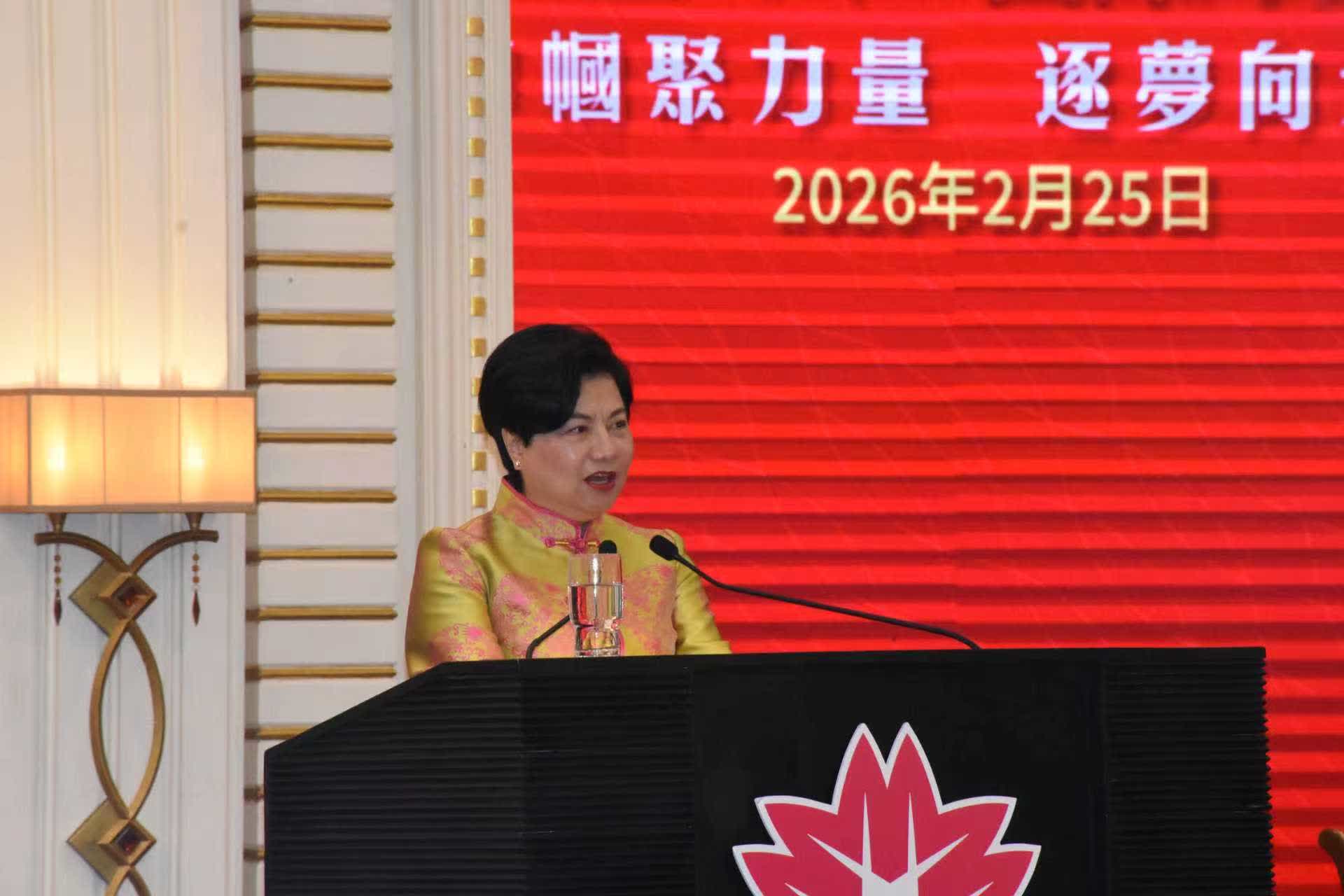 澳門婦女聯合總會會長劉金玲致辭時表示,澳門正處於最好發展時期,廣大婦女正積極主動參與澳門各項社會建設、融入和服務國家發展大局,婦聯會以務實進取的精神,進一步發揮「半邊天」作用,在推動澳門經濟適度多元、參與粵港澳大灣區建設中展現巾幗智慧與力量,共同譜寫澳門特色「一國兩制」成功實踐新篇章。
