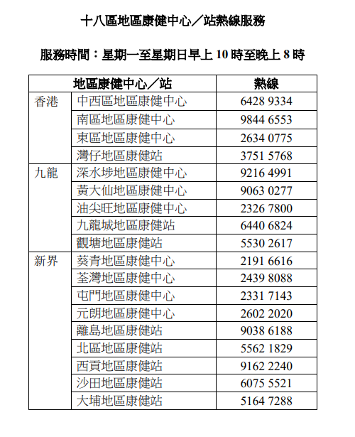 康健中心熱線: