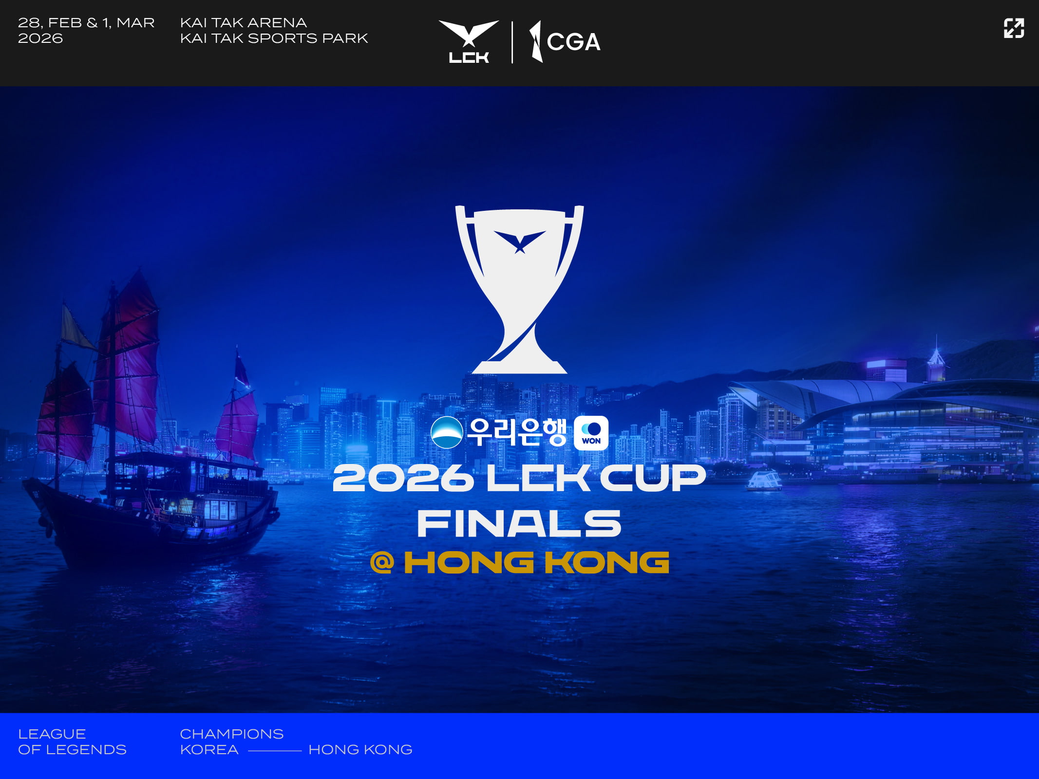 各位觀賽者注意!為確保大家能順利觀看2026 LCK Cup Finals in Hong Kong presented by CGA,請務必遵守啟德體藝館入場規則及現場安排,共同維護良好的觀賽環境✨