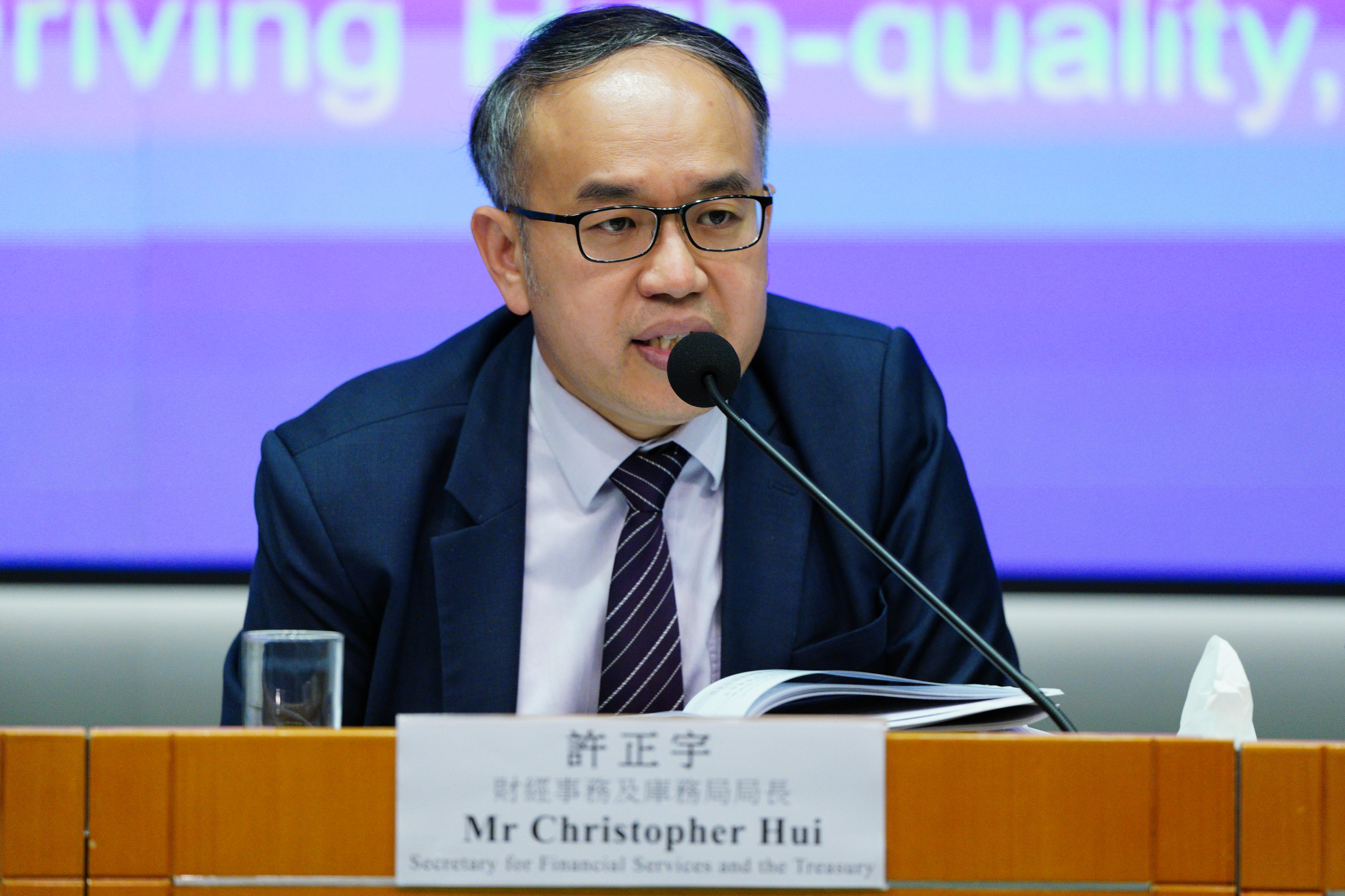 預算案中提到,會從外匯基金轉撥1500億港元支持北部都會區等重大建設,有記者問,若日後發現資金不夠用,會否又要再取用外匯基金。許正宇回應指,第一,這個不是常態化的安排。第二,當局也希望通過政府資本的投入促進多元資本參與北部都會區發展。另外,當局希望發展商能夠夥同創新企業在港發展。總的來說,當局要做到的是以金融或財政手段,槓桿和推動政府及整體經濟多元發展。