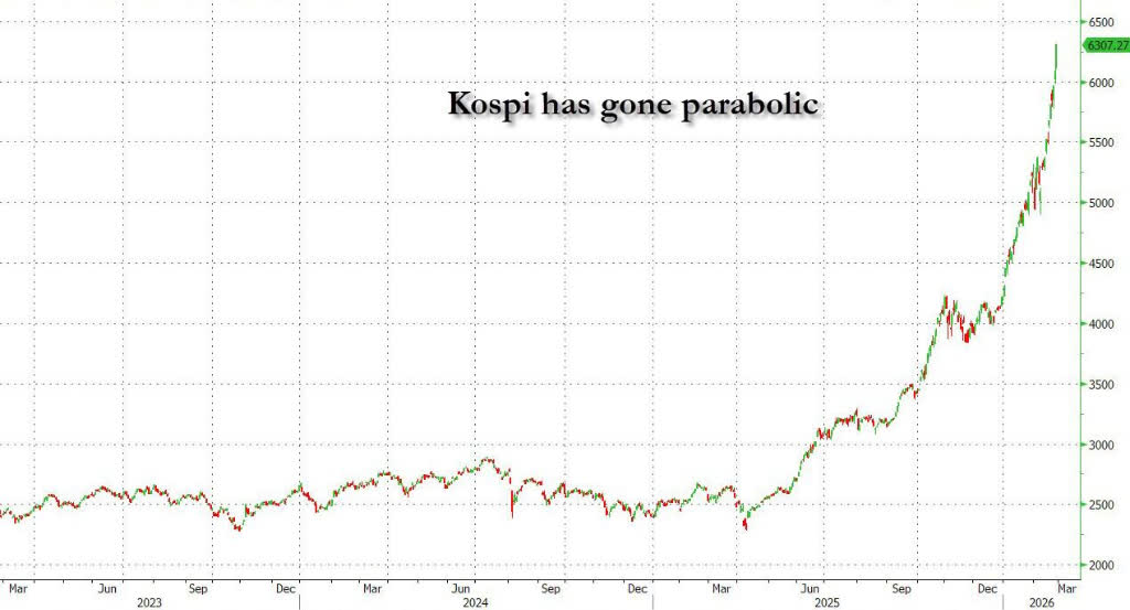 大公文匯網報道,韓國股市昨日(2月26日)迎來里程碑式的一天。基準指數KOSPI在繼歷史性地跨越6,000點大關後,再度勢如破竹,最終報收於6,307.32點,單日大漲3.67%。據韓媒報道,KOSPI今年以來已累計上漲近50%,成為全球表現最亮眼的主要股市。