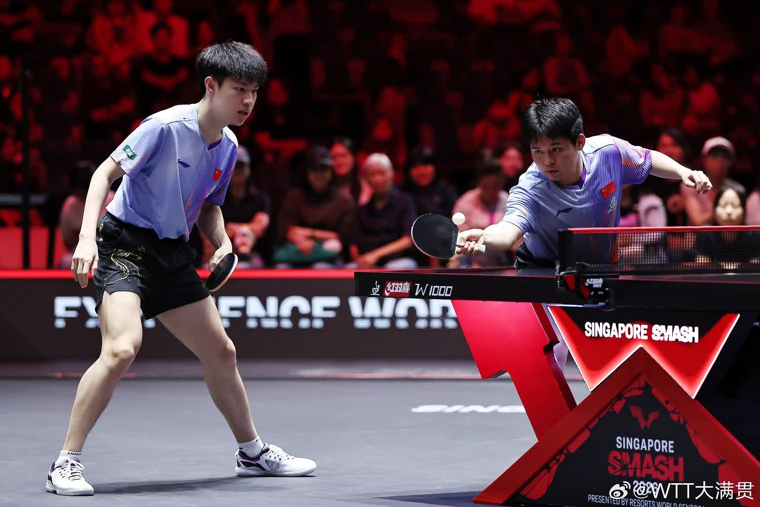 男雙半決賽,國乒組合林詩棟/黃友政以3比0戰勝法國組合埃斯特班·多爾/弗洛里安·布爾拉薩德,將在決賽對陣來自法國的勒布倫兄弟。