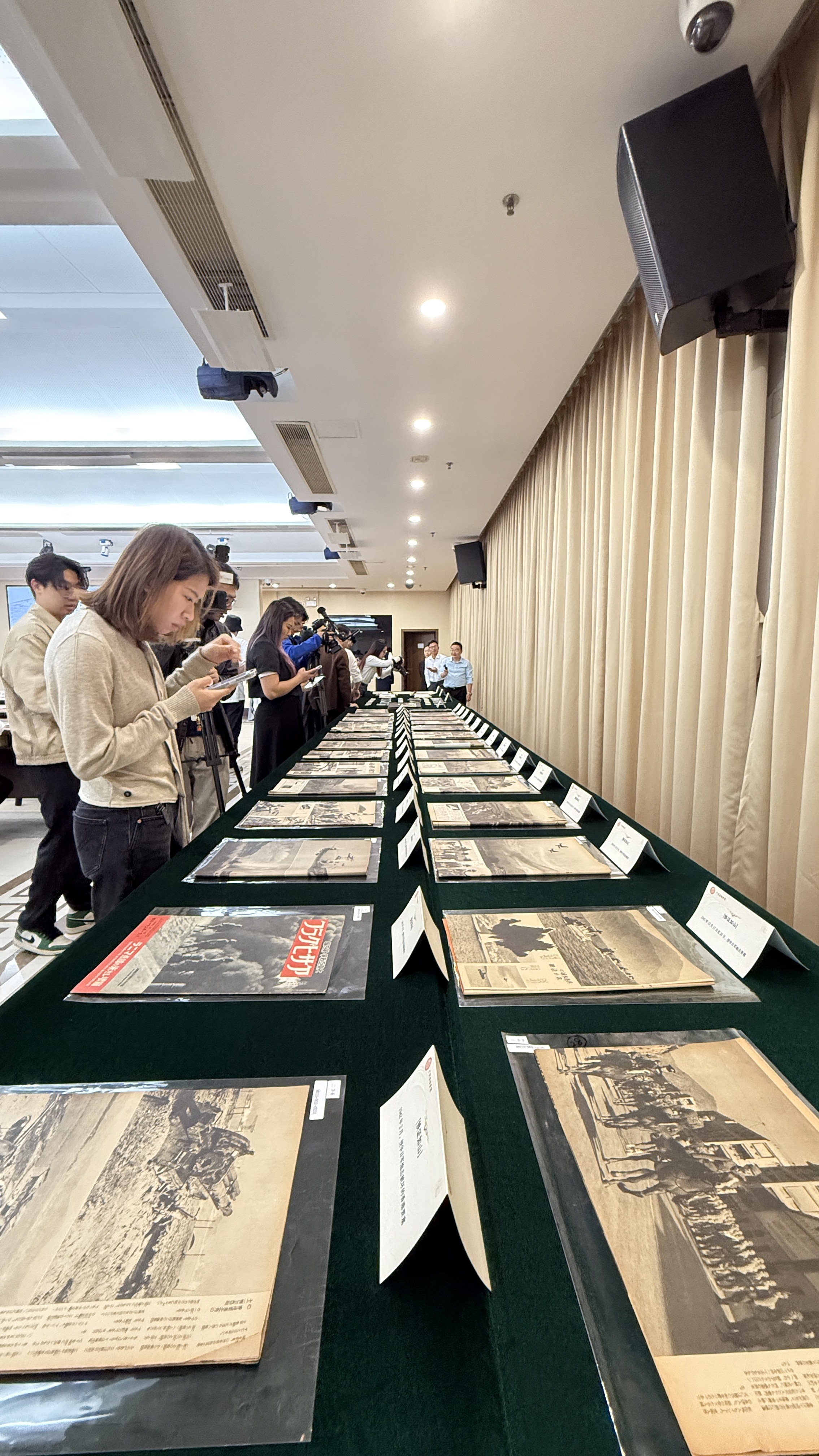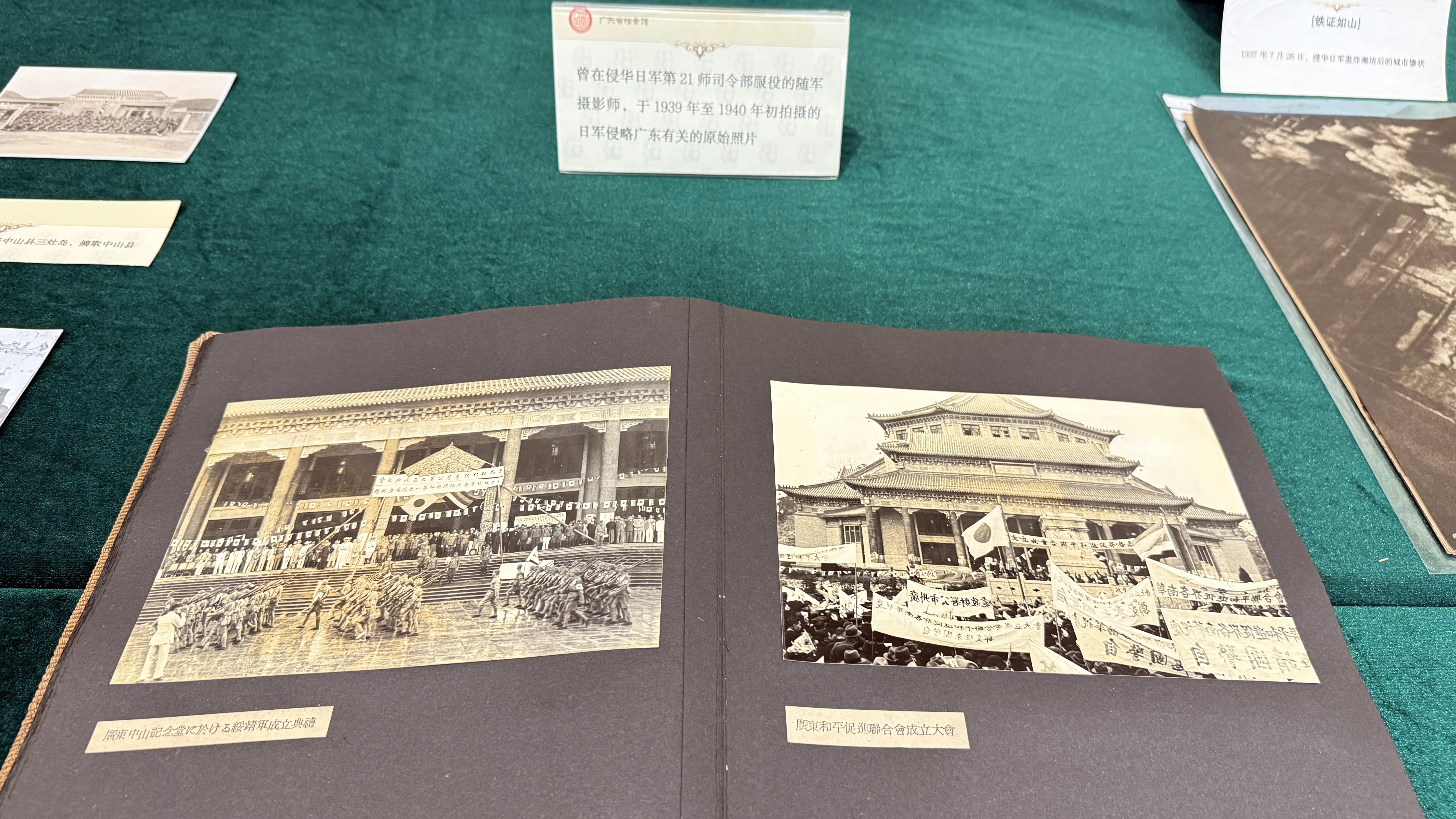 在當天的儀式上,廣東省檔案館還現場展示了新徵集的一批館藏日軍侵華罪行有關檔案,包括在入侵華南的日軍第21軍服役的隨軍攝影師當時拍攝侵略暴行並作為收藏的原始照片、日本新聞媒體當時出版的侵華戰況報道類日文出版物和侵略影集,這些都是日文史料類的日本侵略歷史罪證,彌足珍貴,極具價值。南京、北京、上海、廣州、香港、海口等地淪陷時日軍抓捕屠殺中國平民、摧毀建築物的暴行也一一被記錄在案。