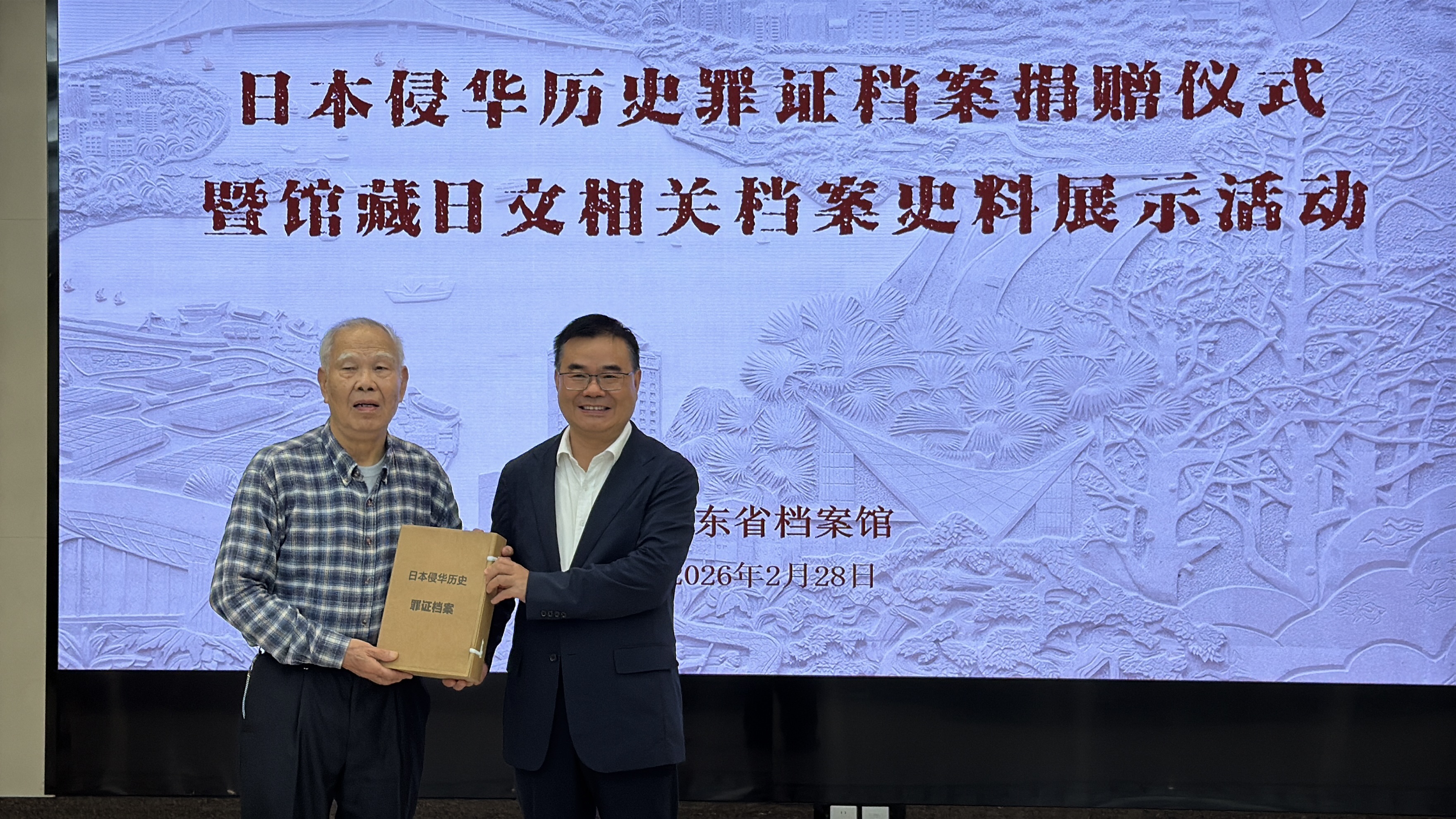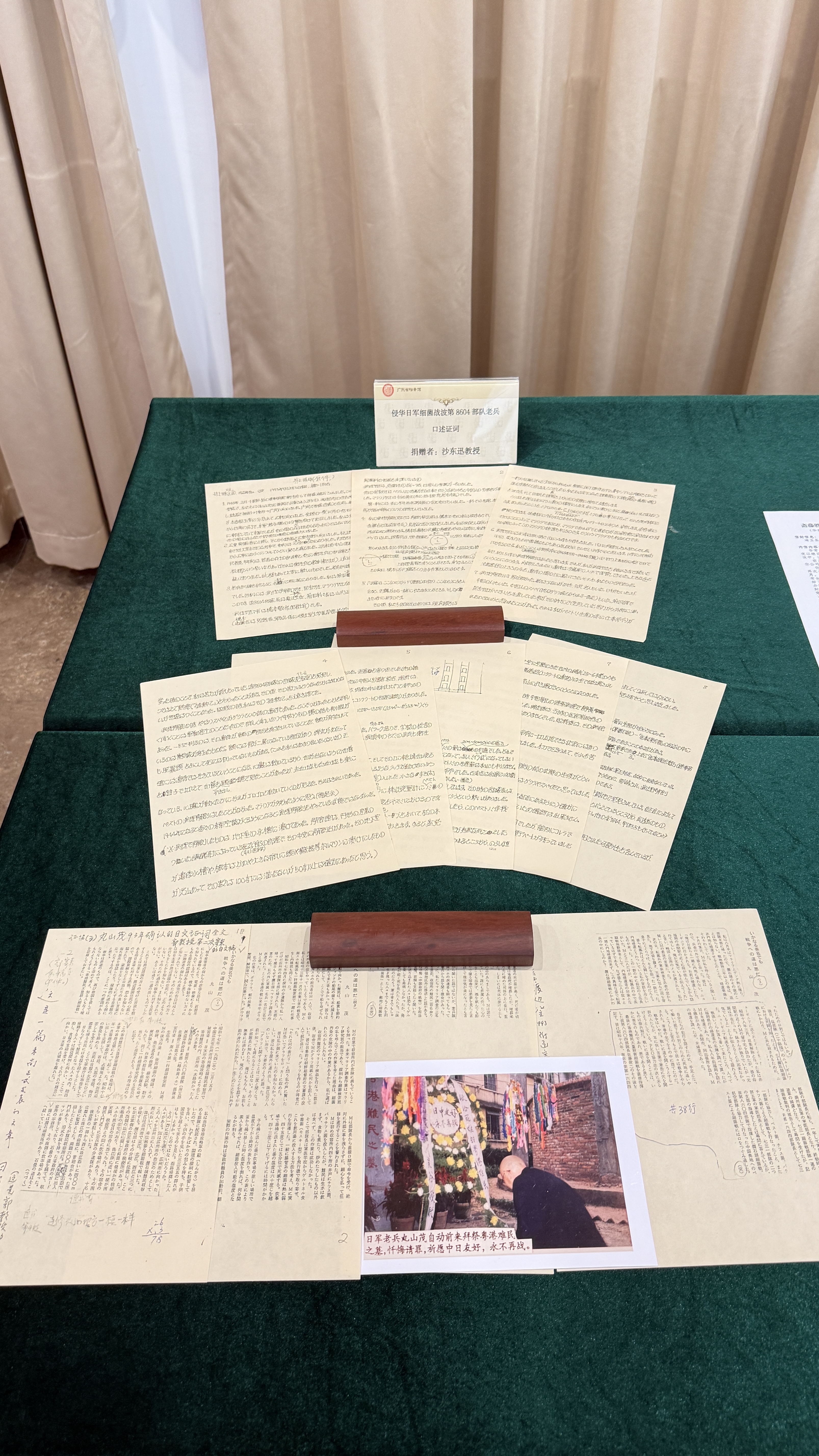 華南師範大學外國語言文化學院副教授吳佩軍捐贈的檔案包括入侵華南的日軍士兵當年寄回日本並蓋有日軍軍事郵戳標記的手寫日文書信原件,反映了當時日軍在華南地區實施軍事侵略和推行奴化教育的具體罪行,是侵略者在未意識到自己將被追究侵略歷史罪責的狀態下,自發記錄留下的原始罪證,白紙黑字,不容抵賴。