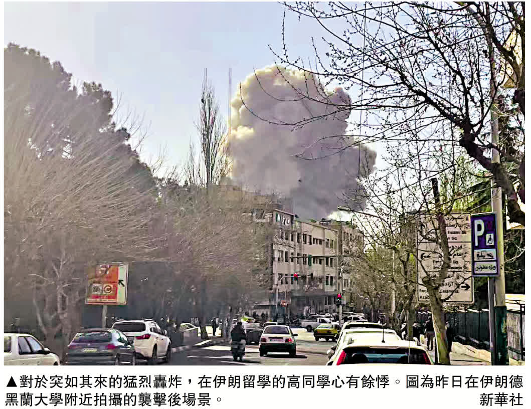 (大公報記者郭嘉)德黑蘭大學國際關係專業研究生高同學接受大公報記者採訪時表示,28日早上襲擊發生時他正在戶外,目睹了德黑蘭一片混亂的情況。受襲擊影響,當地交通比較擁堵,大部分人都在往城外走。當地民眾不清楚接下來會發生什麼,感到恐慌。高同學說,襲擊發生5到10分鐘後,學校發布疏散通知,讓居住在其他城市的學生盡快離開德黑蘭回家,他的許多伊朗同學也已收拾細軟盡快回家。