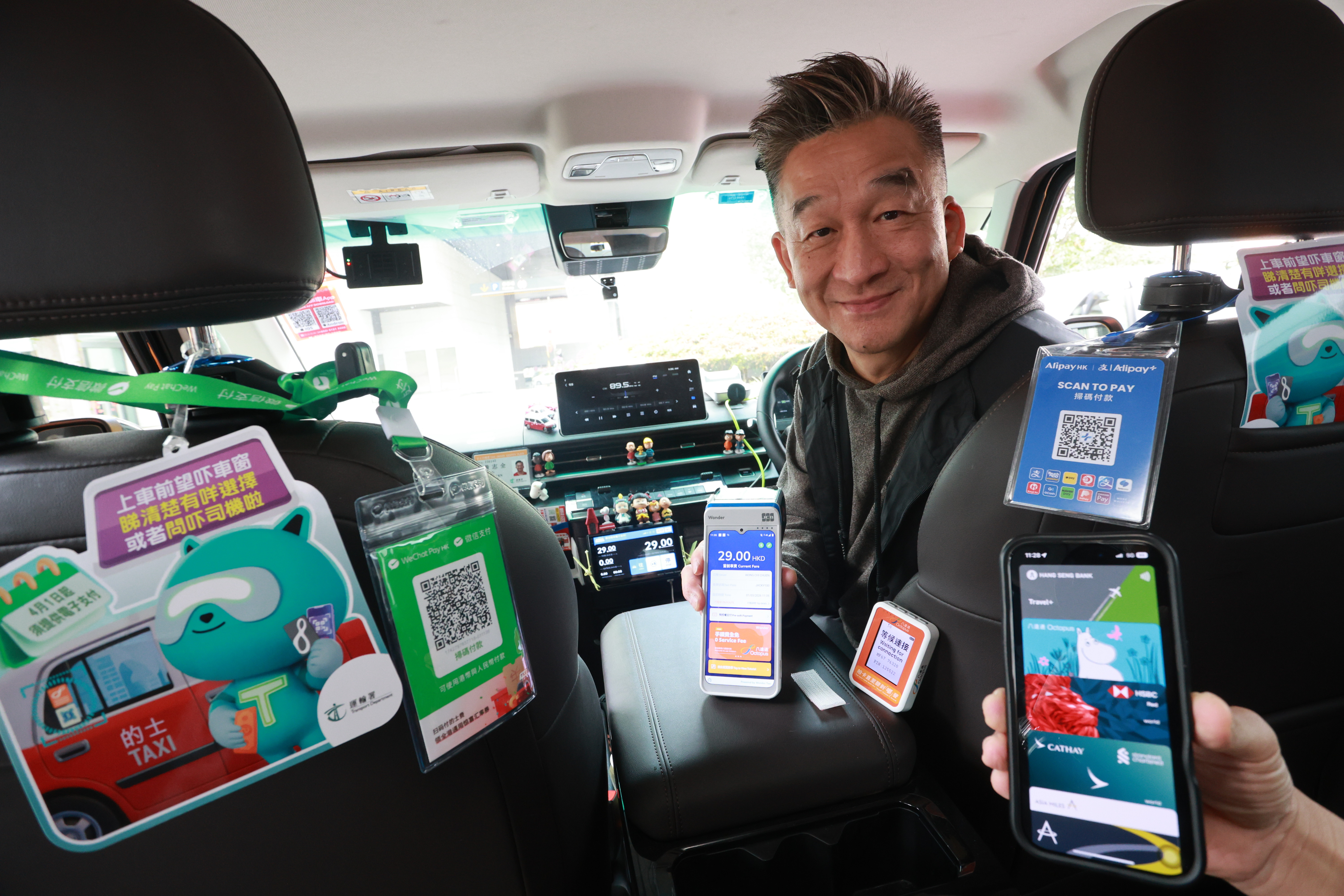 「電子支付唔單止節省咗交易時間,更可以避免找贖錯誤同埋收唔到錢嘅尷尬情況。」已安裝電子支付系統的大黃蜂車隊司機黃先生表示,留意到現時乘客的電子支付使用率已由四五年前的一成,增至現時有三成,形容電子支付已成為的士行業的「必需品」。