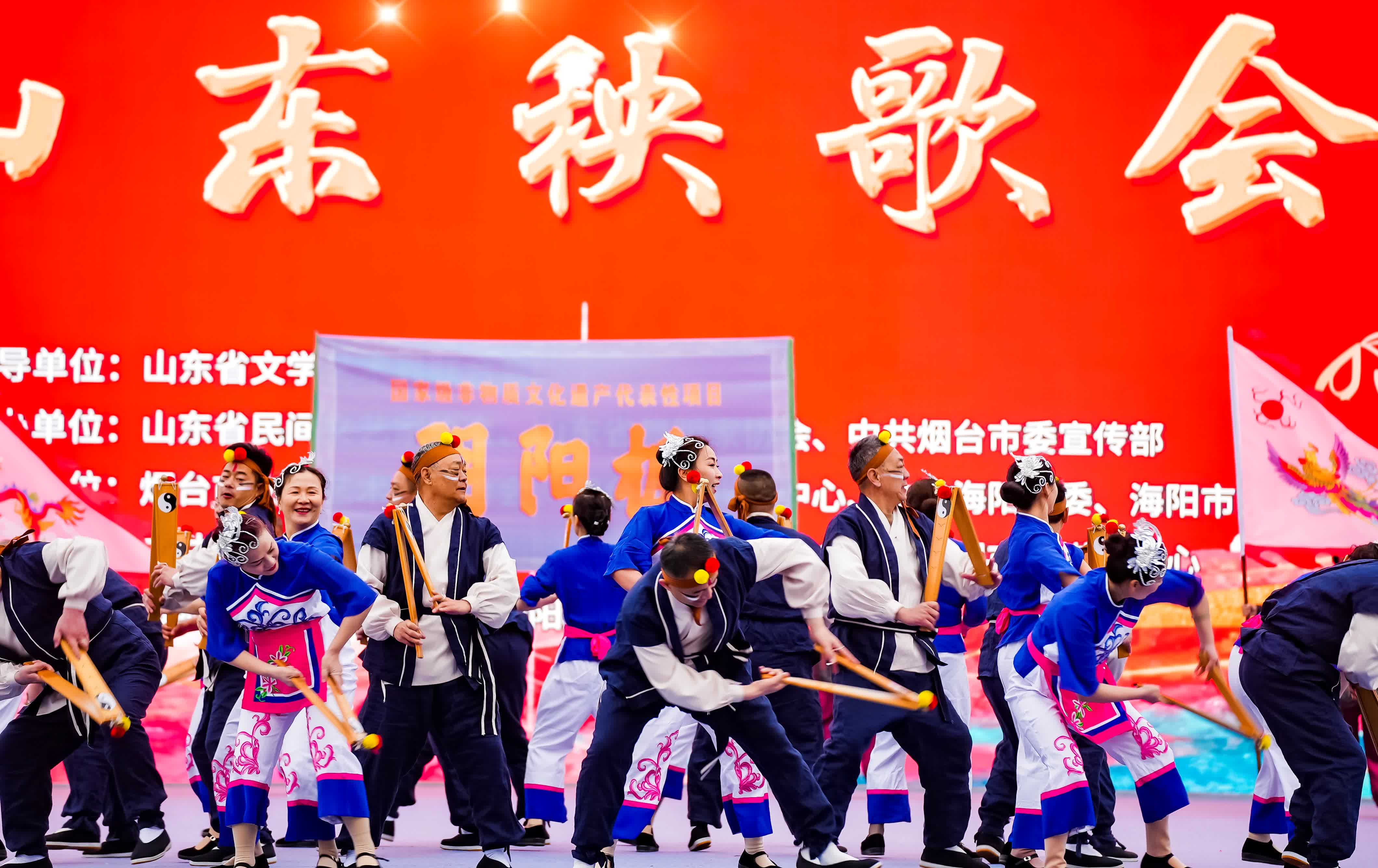 活動現場鑼鼓鏗鏘,綵綢飛舞。扭、擺、跑、走、跳,一支支秧歌隊伍精神抖擻,依次亮相。海陽大秧歌是國家級非物質文化遺產,已有600餘年歷史,其風格粗獷奔放、熱烈歡快、質朴坦率、風趣幽默,是膠東地域文化的重要代表。作為東道主表演團隊,海陽輕工小學秧歌隊、京劇團秧歌隊、魯東秧歌隊聯袂獻上開場表演《好客山東 海陽有禮》,「二龍吐須」「四門鬥」「遍地開花」等經典陣式輪番呈現,贏得現場陣陣掌聲。