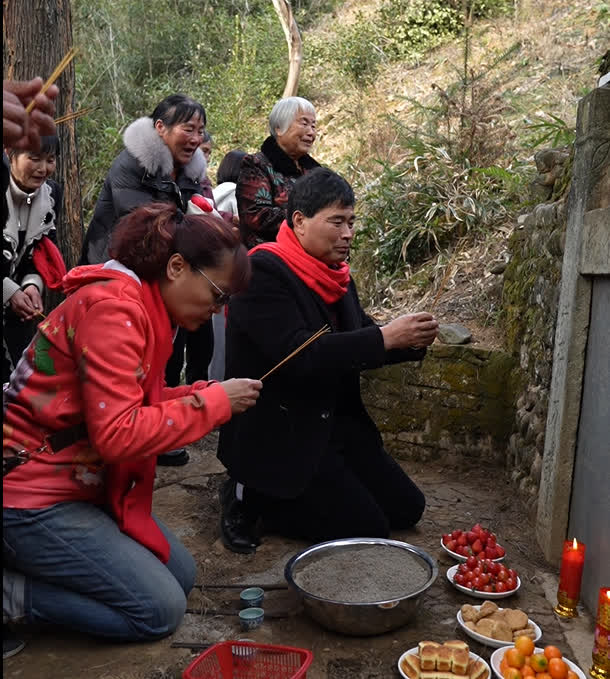 「我爹一直想要回來祭拜他的父母親,但他96歲了,年邁體弱,無法親自歸來。我終於替他圓了這個心愿。」祠堂裏的香火裊裊升起,童愛甯點香敬祖。當站在爺爺奶奶、太爺太奶的墳前時,她告慰祖先:「童志有回家了,童愛甯回家了。你們的這支血脈,認祖歸宗回來了。我們回家了。」