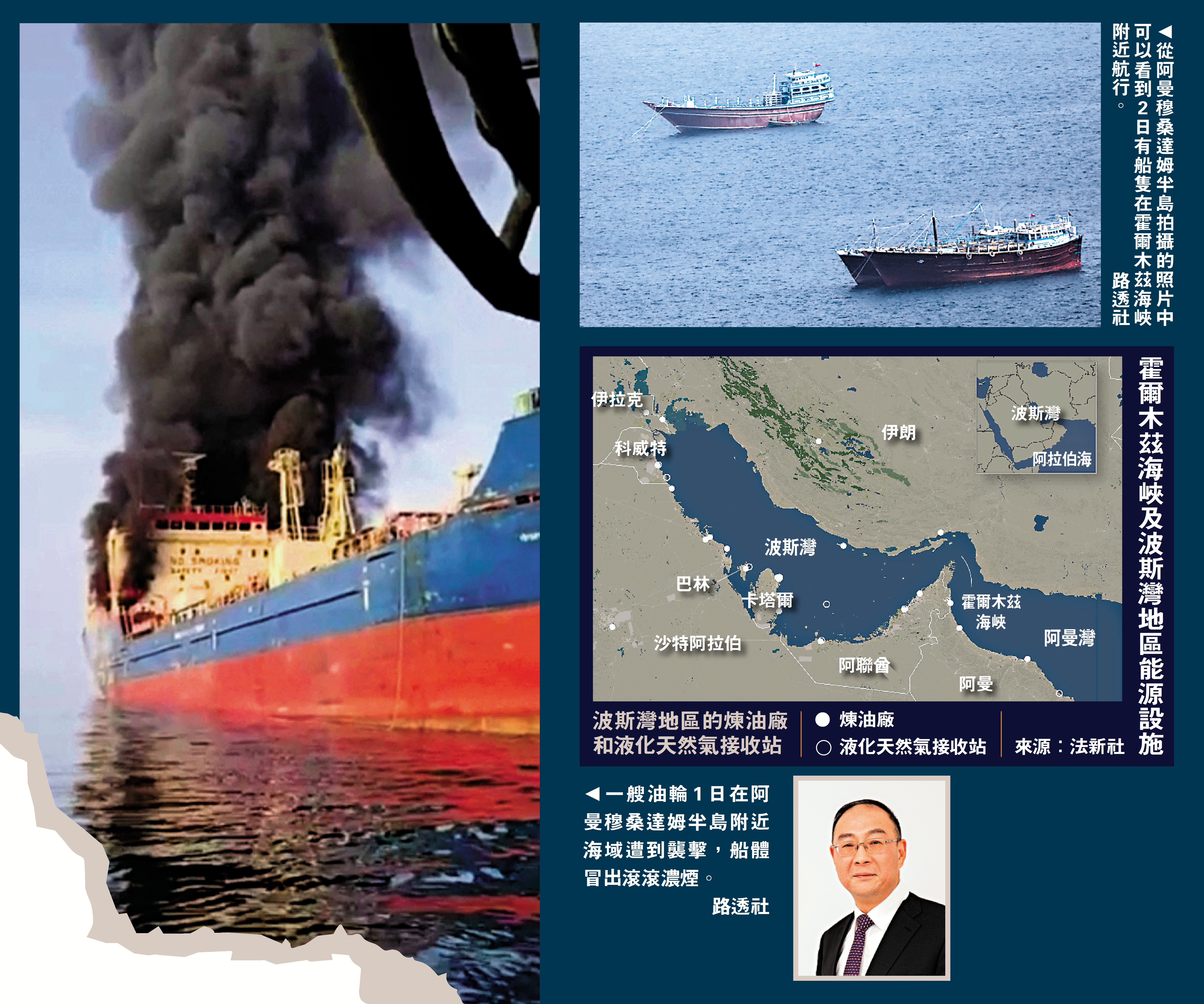 •任何對霍爾木茲海峽的干擾行動,都可能導致全球油價波動。美以襲擊伊朗後,紐約期油和布蘭特期油3日急升,分別高見每桶77.98美元及85.12美元。