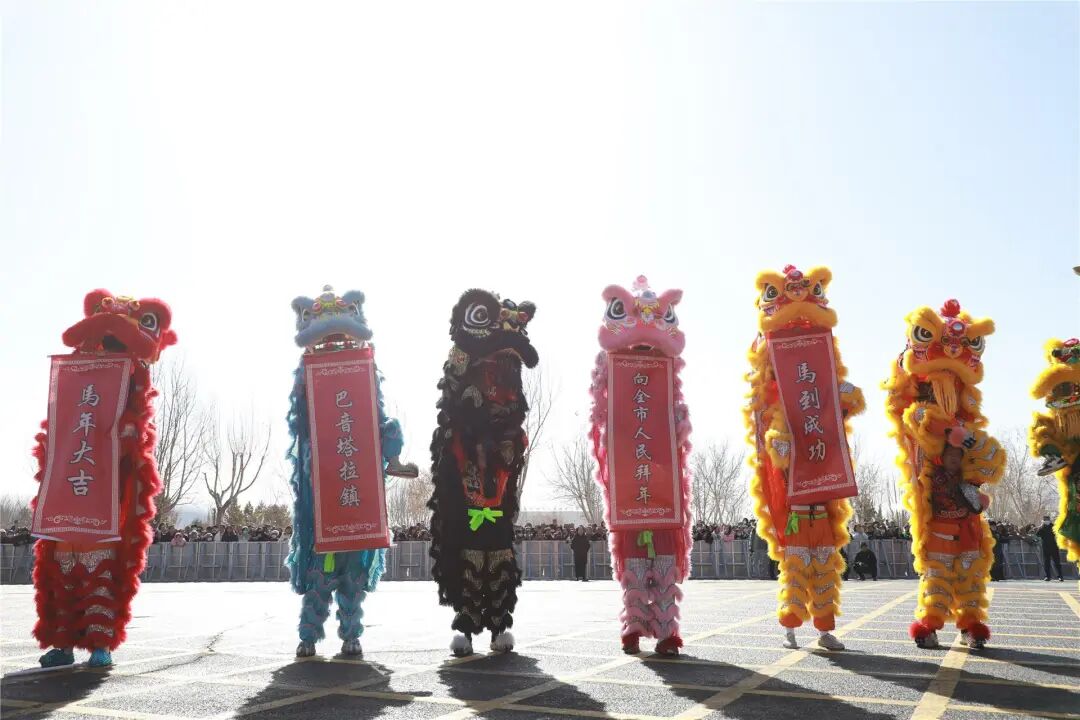 傳統民俗展演同樣亮點紛呈,為元宵佳節送上美好祝福。巴音塔拉鎮「錦獅鬧春」方陣中,50名隊員帶着13頭錦獅盛裝登場,步伐整齊、動作協調,錦獅騰躍翻滾、靈動威武,將傳統舞獅與方陣展演完美結合,傳遞出新春納福、風調雨順、國泰民安的美好祈願。玫瑰營鎮「歡喜娃娃」方陣活力四射,演員們扭着歡快的秧歌與現場遊客親切互動,稚嫩的臉龐、靈動的舞姿,勾勒出萬家團圓、其樂融融的祥和畫面。黃茂營鄉「同心紅綢秧歌隊」方陣溫情滿滿,88名隊員分為鄉幹部代表隊與民間表演隊,紅綢翻飛、秧歌歡舞,生動詮釋出幹群同心、攜手同行、共促發展的精神風貌。烏拉哈鄉「步步高升」高蹺方陣踩着高蹺踏春而來,步步登高的姿態寓意美好;老圈溝鄉「多彩非遺」方陣中,演員們身着絢麗的傳統彩服,隊形變幻、動作靈動,原汁原味的非遺表演讓群眾在觀賞民俗、品味非遺中感受中華優秀傳統文化的獨特魅力。