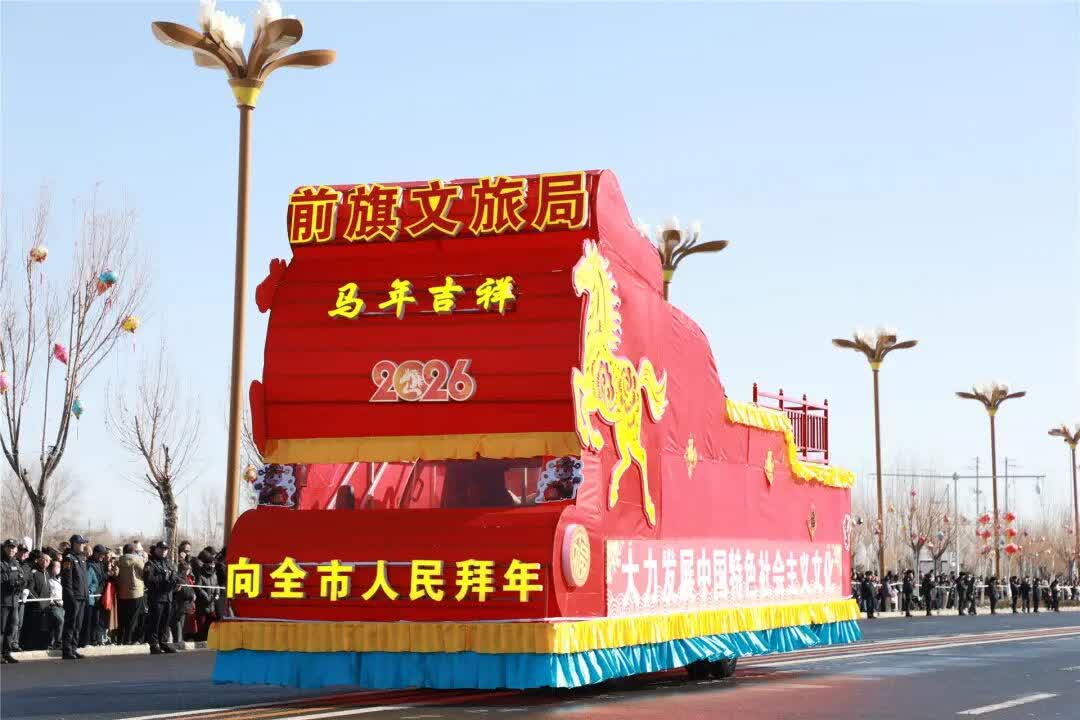 鑼鼓鏗鏘慶元宵,策馬迎春啟新程。3月3日,「時光築夢·馬躍新春」烏蘭察布市察右前旗元宵群眾文化活動在黃旗海鎮康寧世紀路、泰昌路精彩上演,11支特色展演方陣依次沿街巡遊、同台獻藝,以時光為脈絡串聯起歲月變遷與時代新貌,將傳統民俗風情與現代發展活力相融,讓現場市民、遊客在沉浸式體驗中重溫時代記憶、感受家鄉變化,在歡歌笑語與熱鬧氛圍中共慶元宵佳節,為察右前旗勾勒出一幅喜慶團圓、生機勃勃的節日圖景。