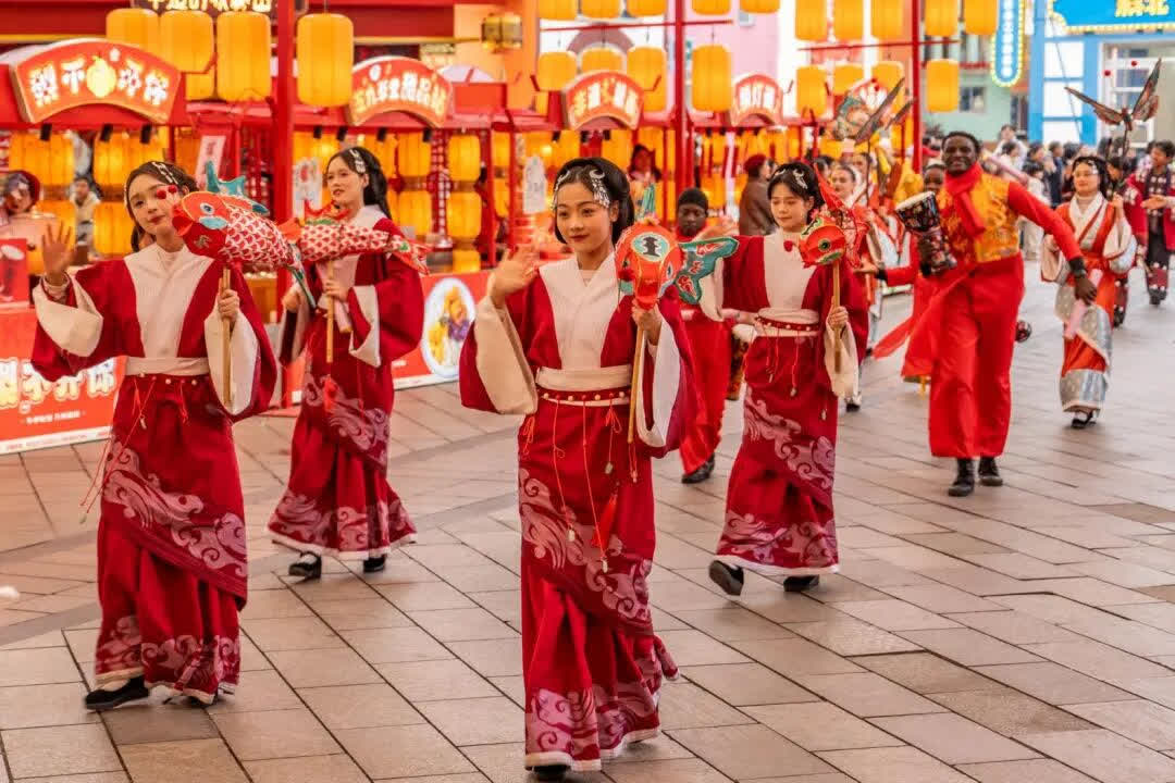 逛廟會、賞燈會、飛花對詩,看舞獅騰躍、學射箭挽弓,再親手寫一張福字帶回家——傳統年俗味兒,一站集齊!疲憊時還可以停下腳步,坐下來品嘗一番清潤解乏的蓮藕湯、軟糯香甜的甜酒圓子、醇香暖心的糯米甜酒,一口穿越千年,在煙火香氣裏,沉浸式感受漢代舌尖上的美味,讓千年漢風浸潤團圓時光,讓馬年好運即刻啟程。