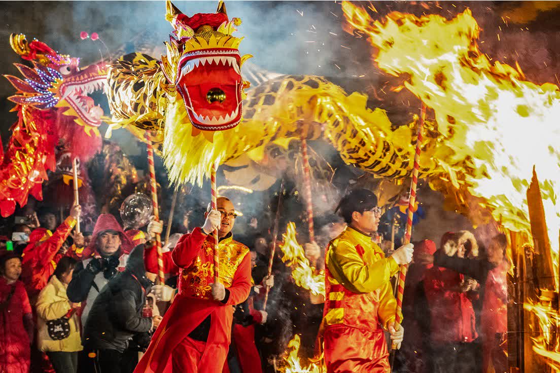 3月3日,元宵節,湖南懷化洪江古商城鑼鼓鏗鏘、人聲鼎沸,「洪福洪江年·小城過大年」系列活動「元宵喜送龍」熱鬧舉行。數萬遊客與市民齊聚千年商城,與龍隊親密互動,觀看龍過火、送龍飛升、龍獅巡遊等傳統儀式和表演,沉浸式感受洪商文化的深厚底蘊,共度元宵。