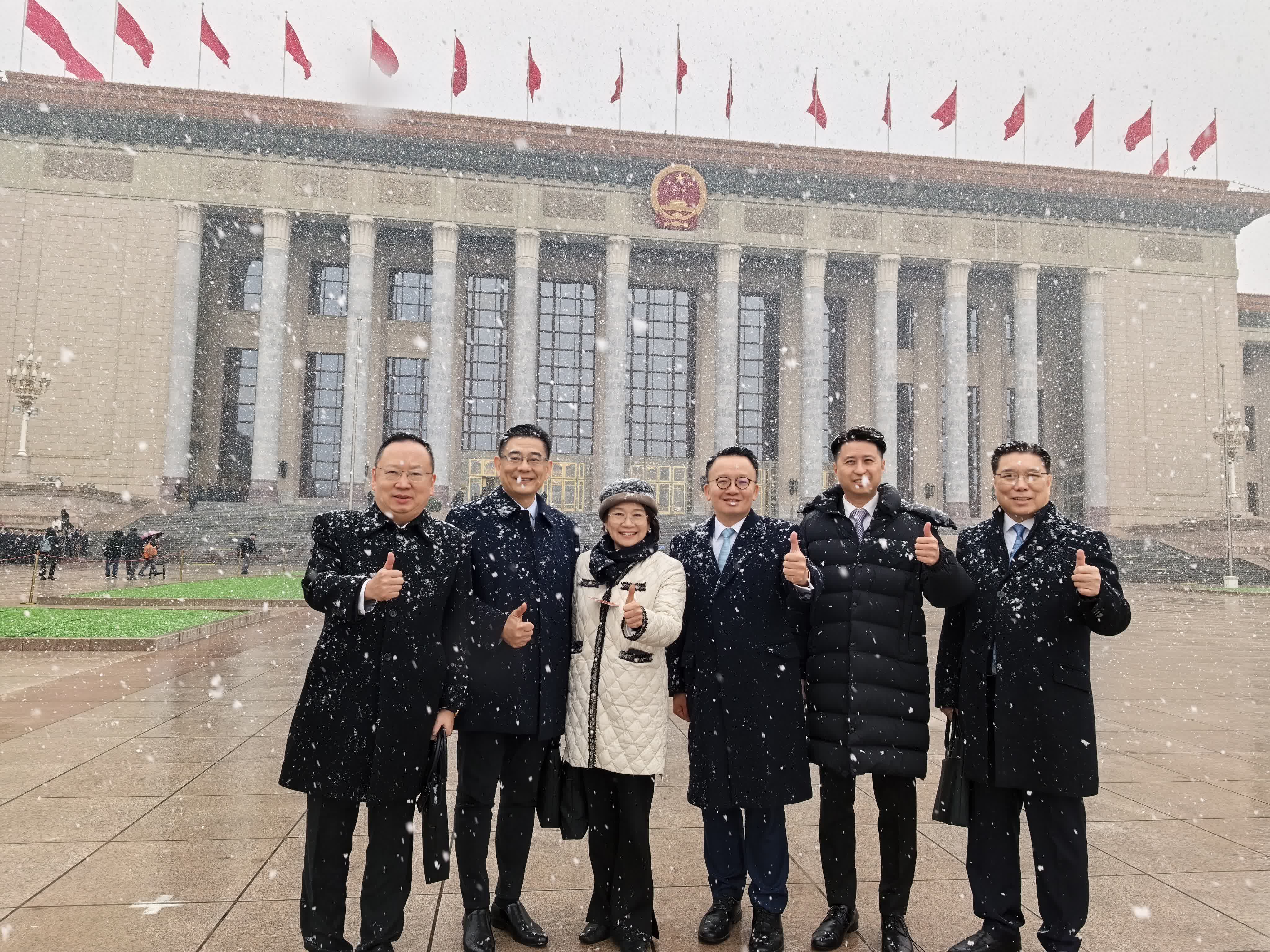 這場春日降雪讓常年少見雪的港區代表們倍感欣喜,紛紛用鏡頭記錄下這一美好瞬間。港區全國人大代表、全國人大常委會香港基本法委員會委員梁美芬表示,春日裏的瑞雪恰逢兩會召開,寓意着「瑞雪兆豐年」,是國家發展的美好祥兆,也讓大家對此次兩會的召開充滿期待。港區人大代表、法律界立法會議員陳曉峰表示,今天的預備會議非常成功,儘管離開大會堂時遇到風雪,但並不影響代表們的熱情。