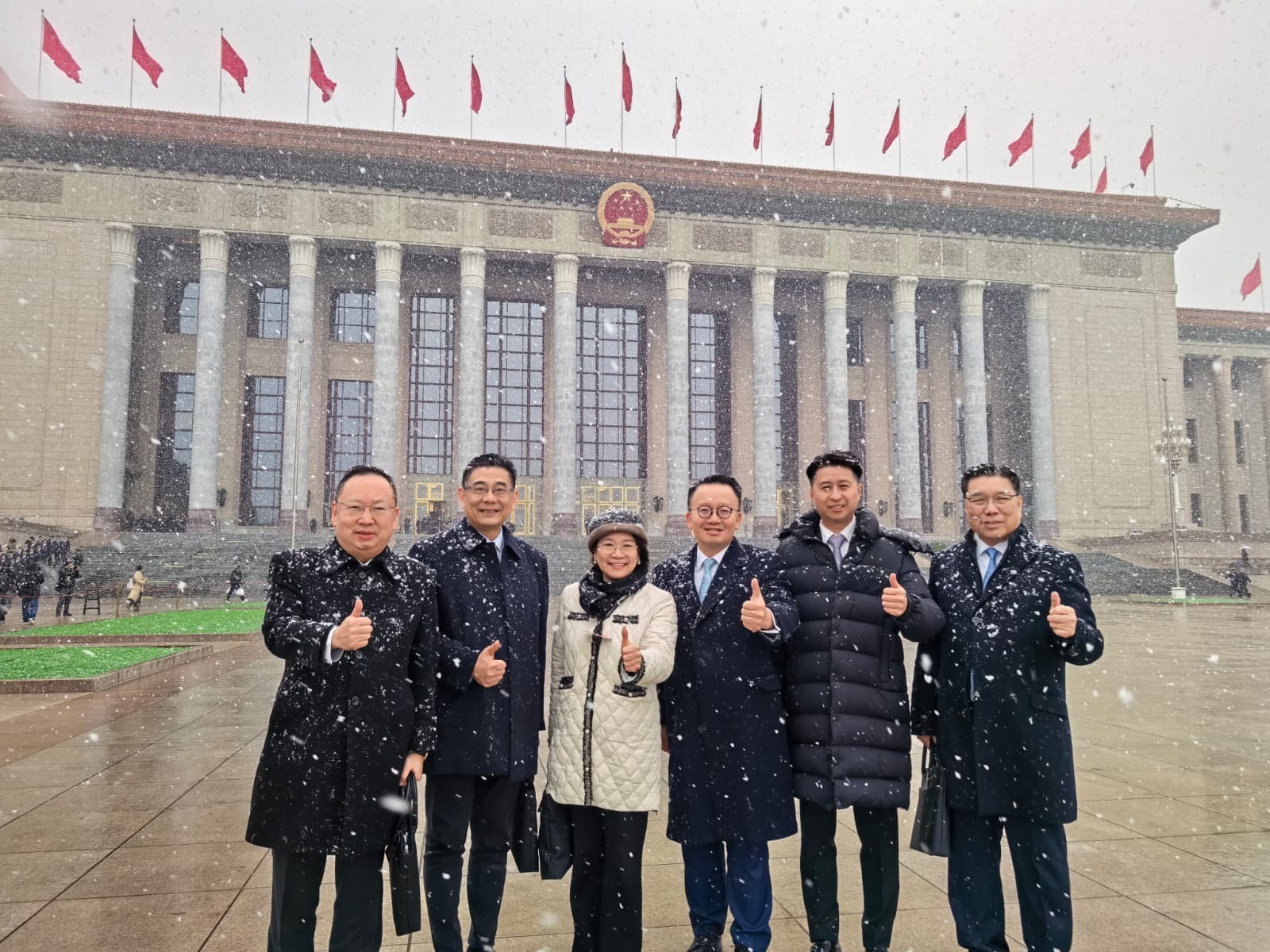 (大公文匯全媒體 特約記者陳曉峰、記者陳子萌)全國兩會於北京召開,港區全國人大代表及政協委員近日抵達北京參會。今日(4日)上午,北京下起了大雪,人民大會堂前出現漫天飄雪的景象。