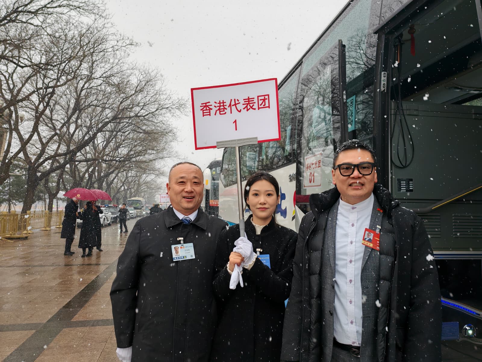 港區全國人大代表、自由黨副主席陳曉峰和港區全國人大代表、立法會議員陳仲尼紛紛對萬里雪飄的美景讚不絕口,更表示,前來參會多次,今次見到落雪之景屬實難得。