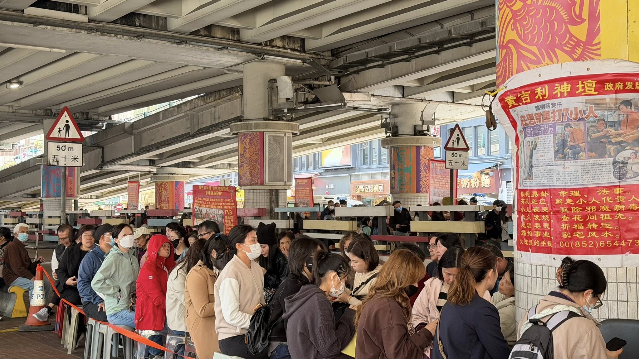 大公文匯全媒體報道,是日「驚蟄」,傳統上是「打小人」送瘟神的吉日,銅鑼灣鵝頸橋下由今早(5日)起就人頭湧湧,小人婆手口唔停,敲打聲此起彼落,部分攤檔更排起近百人長龍。