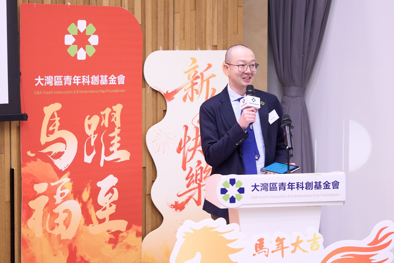 在團拜致辭環節之後,青創會葉華明副會長深情回顧了青創會自2022年創立以來的發展歷程,從初心起航到如今跨界融合的深耕細作。葉華明副會長重點概述了青創會目前着力打造的四大王牌活動:包括聚焦 AI 前沿的「全港大學生商業分析大賽」、助力青年融入國家的「築夢飛揚實習就業計劃」,影響力深遠的「青創峰會」以及深受好評的「青創體驗營」。他強調,這些成就離不開各界的鼎力支持,青創會將持續致力於為青年科技人才搭建更廣闊的交流與合作平台 。