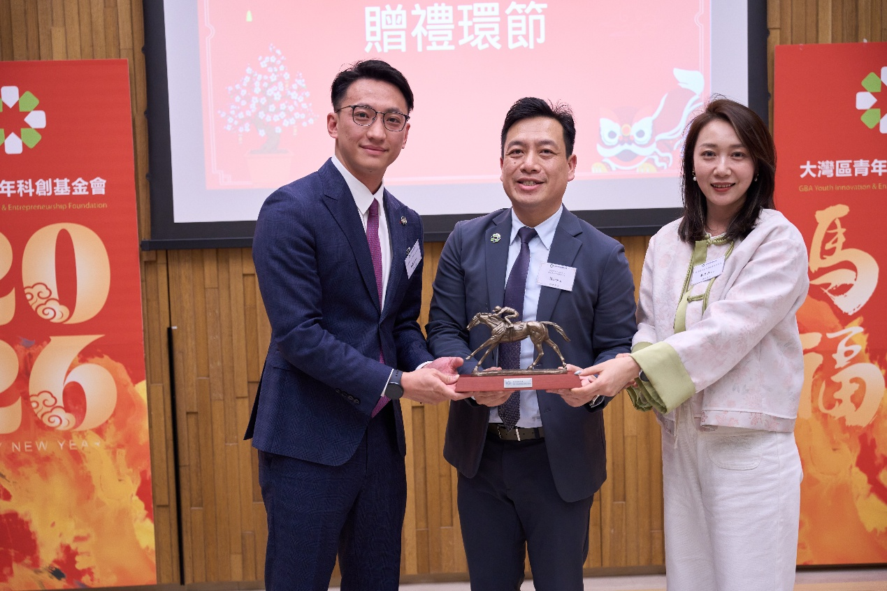 在團拜會現場,意義深遠的贈禮儀式將熱烈氣氛推向高潮,各界嘉賓共襄盛舉,傳遞深厚情誼。首先進行的是「龍馬精神,誌慶新春」贈禮環節,青創會榮幸收到來自香港賽馬會贈予的精美銅馬賀禮,恰逢丙午馬年,寓意事業騰飛、馬到功成。儀式上,香港賽馬會代表林嘉文先生、劉晶晶女士上台贈禮,並由林知創會會長代表接收,雙方合影留念並分享感言,共同祝福青創事業在新的一年策馬揚鞭。