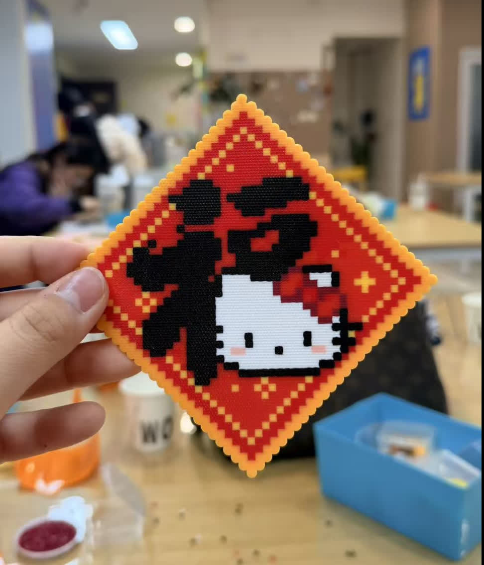 在許多人眼中,這或許只是簡單的手工,但對李然和她的同齡人來說,這是一種名為「拚豆」(Perler Beads)的新興解壓方式。它並非兒童的專利,而是風靡社交網絡的「成年人的像素畫」。玩家需用鑷子將五顏六色的塑料小豆,依照圖紙一顆顆碼放在帶孔模板上,拚組成圖案後,再經熨斗熱熔定型。從復古的像素風遊戲人物到個性化的紀念品,這些五顏六色的小豆子,正成為年輕人手中的「社交貨幣」與「精神快充」。