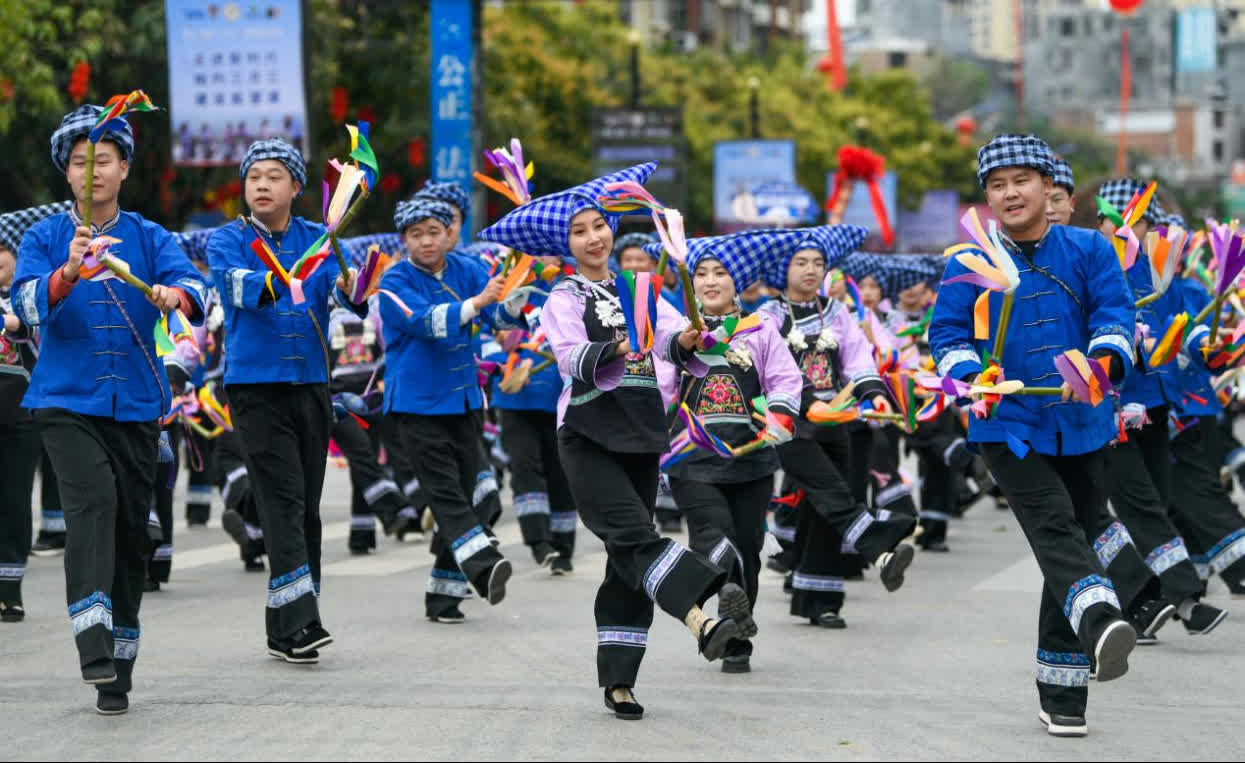 充分發揮生態氣候資源和民族文化優勢強旅遊。黔西南地處北緯25°黃金氣候生態帶,被中國氣象協會評為「中國四季康養之都」,州內居住着46個民族,民族文化具有獨特魅力。今年春節期間,舉辦「貴州村舞」活動近200場次,推動文旅體深度融合,彝族的「阿妹戚托」、布依族的「糠包舞」、苗族的「板凳舞」,一場場帶着泥土芬芳卻又魅力四射的「村舞」,舞熱了景區、舞活了村寨,讓八方遊客在靈動歡快的舞步中,感受到最動人、最地道的黔西南年味。