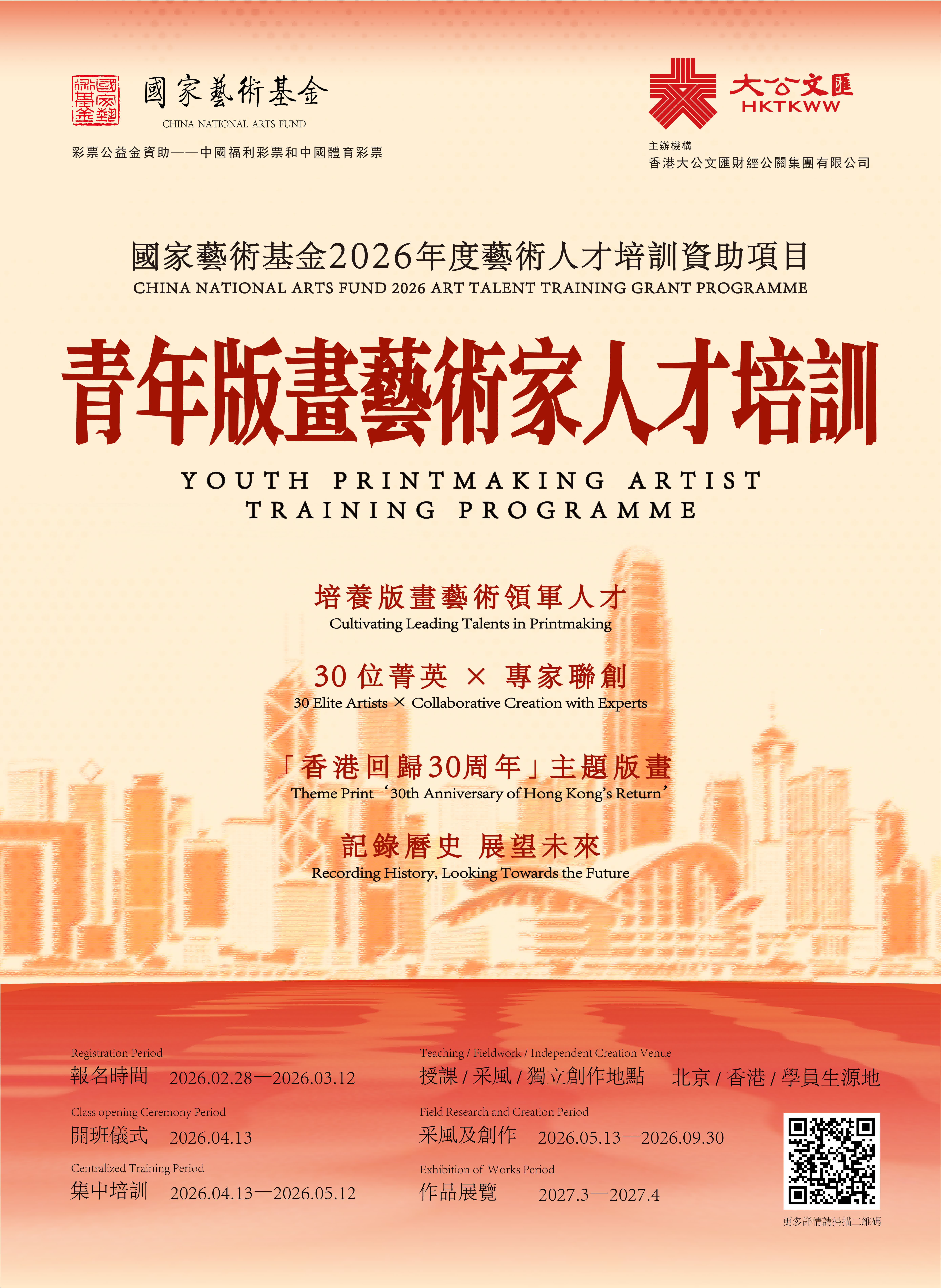 《青年版畫藝術家人才培訓》項目由香港大公文匯財經公關集團有限公司主辦,國家藝術基金2026年度藝術人才培訓資助,現面向全國招收學員。