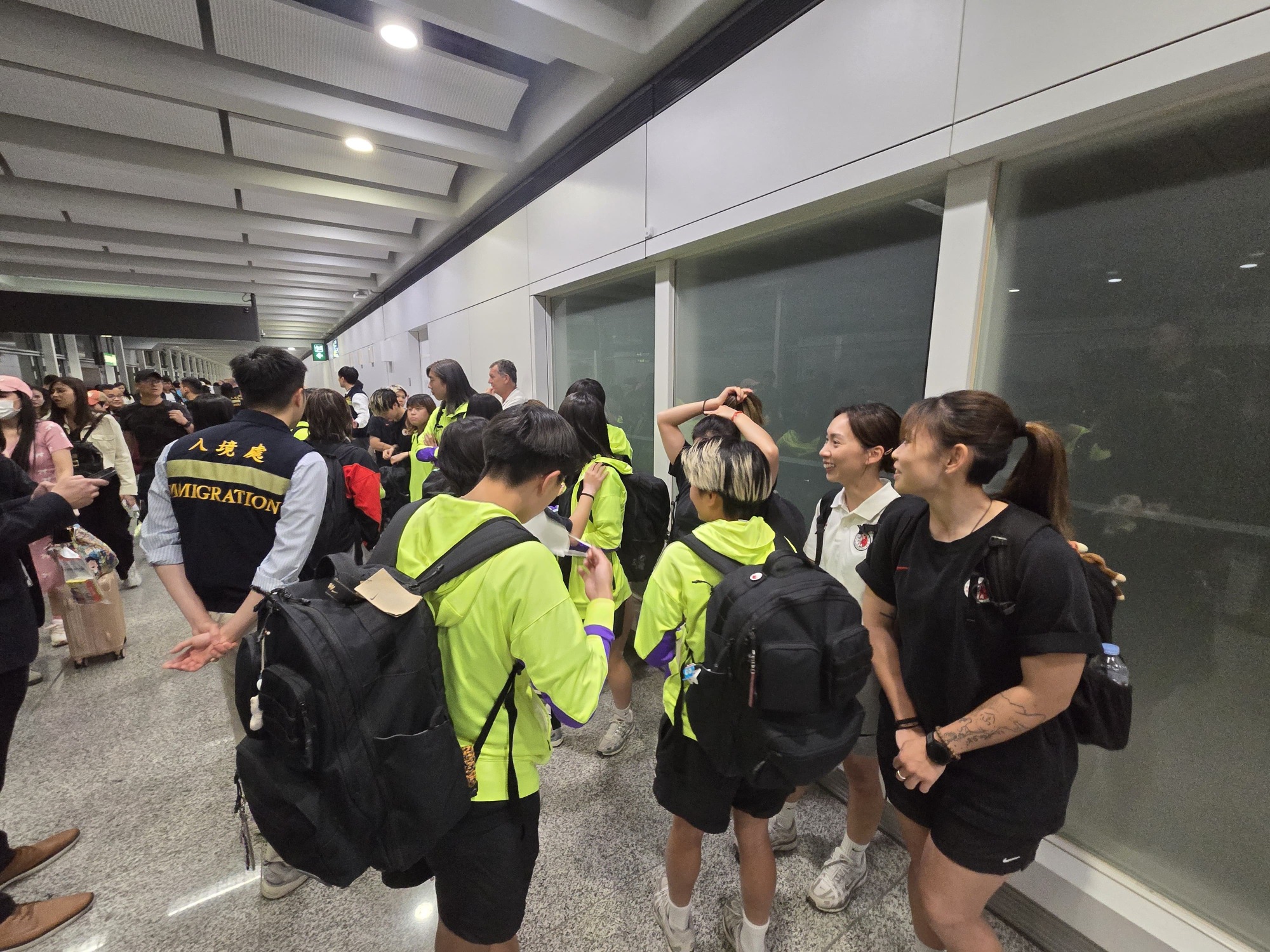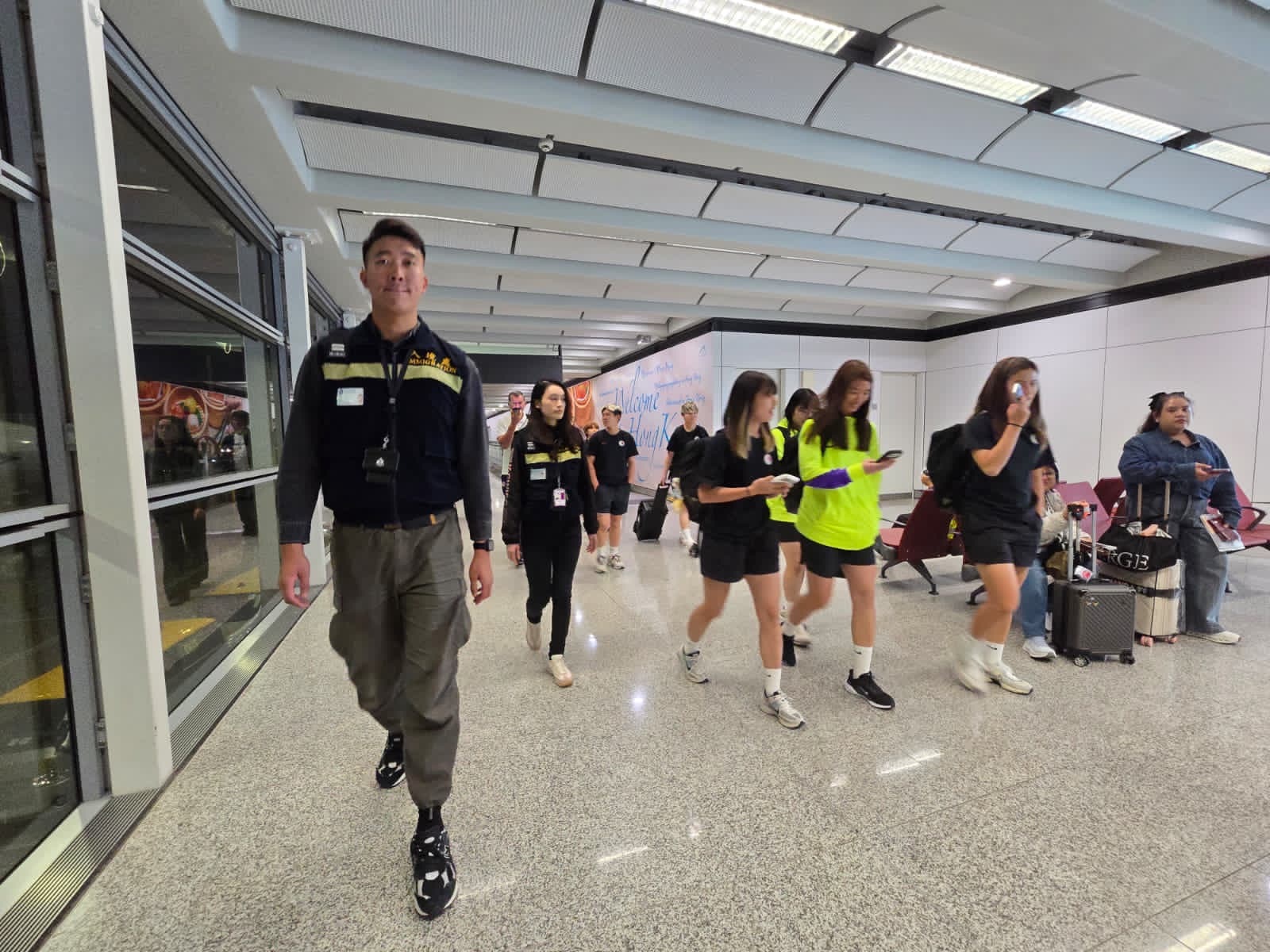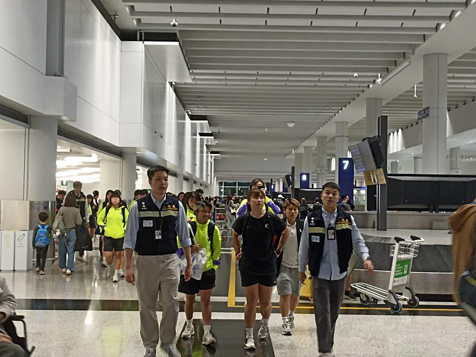 近日,迪拜國際機場恢復有限度運作,入境處持續跟進航班狀況,向受影響港人發放最新資訊,包括協助有需要的港人聯繫航空公司,及透過駐迪拜經貿辦在當地機場的協調,讓他們順利登上航班。於3月6日晚,入境處迎來早前滯留迪拜的香港女子足球代表隊順利抵港。