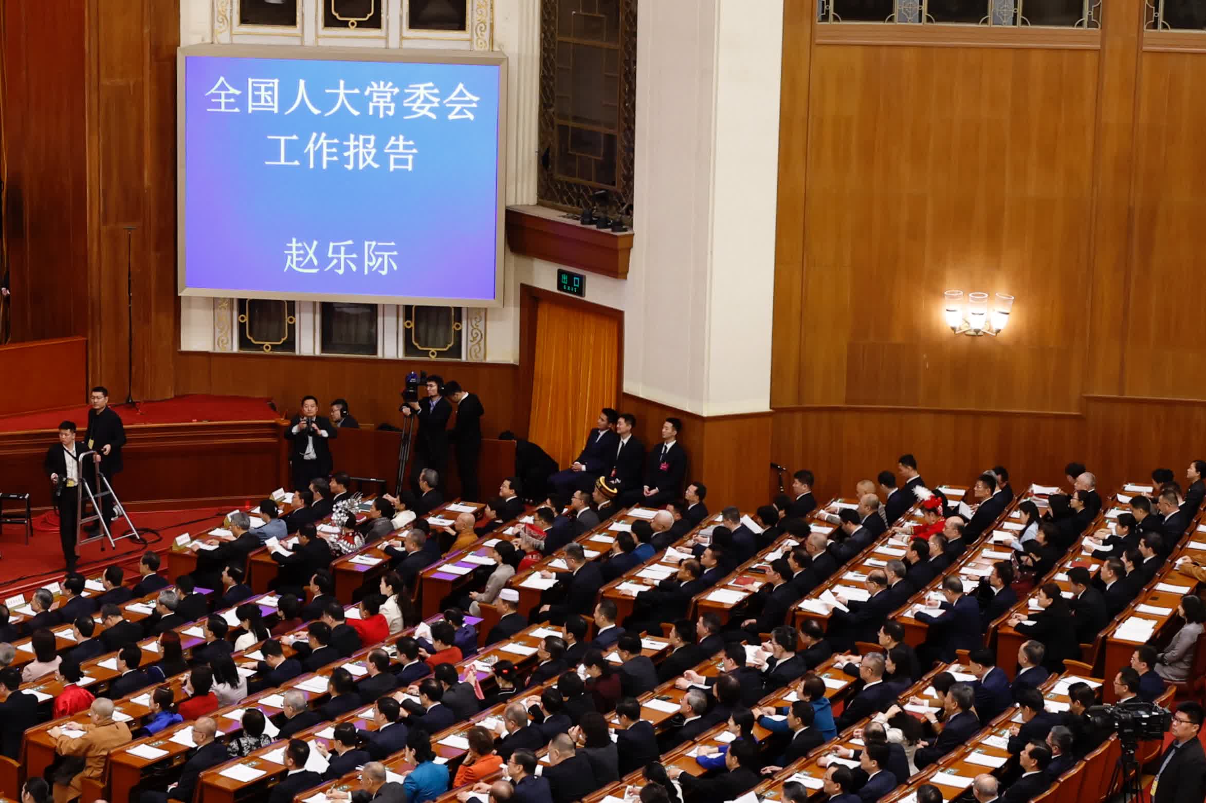 趙樂際在報告中對今後一年的任務進行部署:推動憲法全面貫徹實施,完善憲法相關法律制度,全面發揮憲法在立法中的核心地位功能;不斷完善中國特色社會主義法律體系,聚焦保障「十五五」規劃貫徹實施,加強重點領域、新興領域、涉外領域立法,着力提高立法質量;進一步增強監督工作針對性實效性,推動解決制約經濟社會發展的突出矛盾和問題,推進各方面工作法治化;服務保障代表依法履職,支持代表密切聯繫人民群眾,更好將民意民智反映到議案建議和審議發言中;積極開展人大對外交往,立足人大職能職責,加強與外國議會、國際和地區議會組織的交流合作;扎實推進「四個機關」建設,提高新時代人大工作水平。