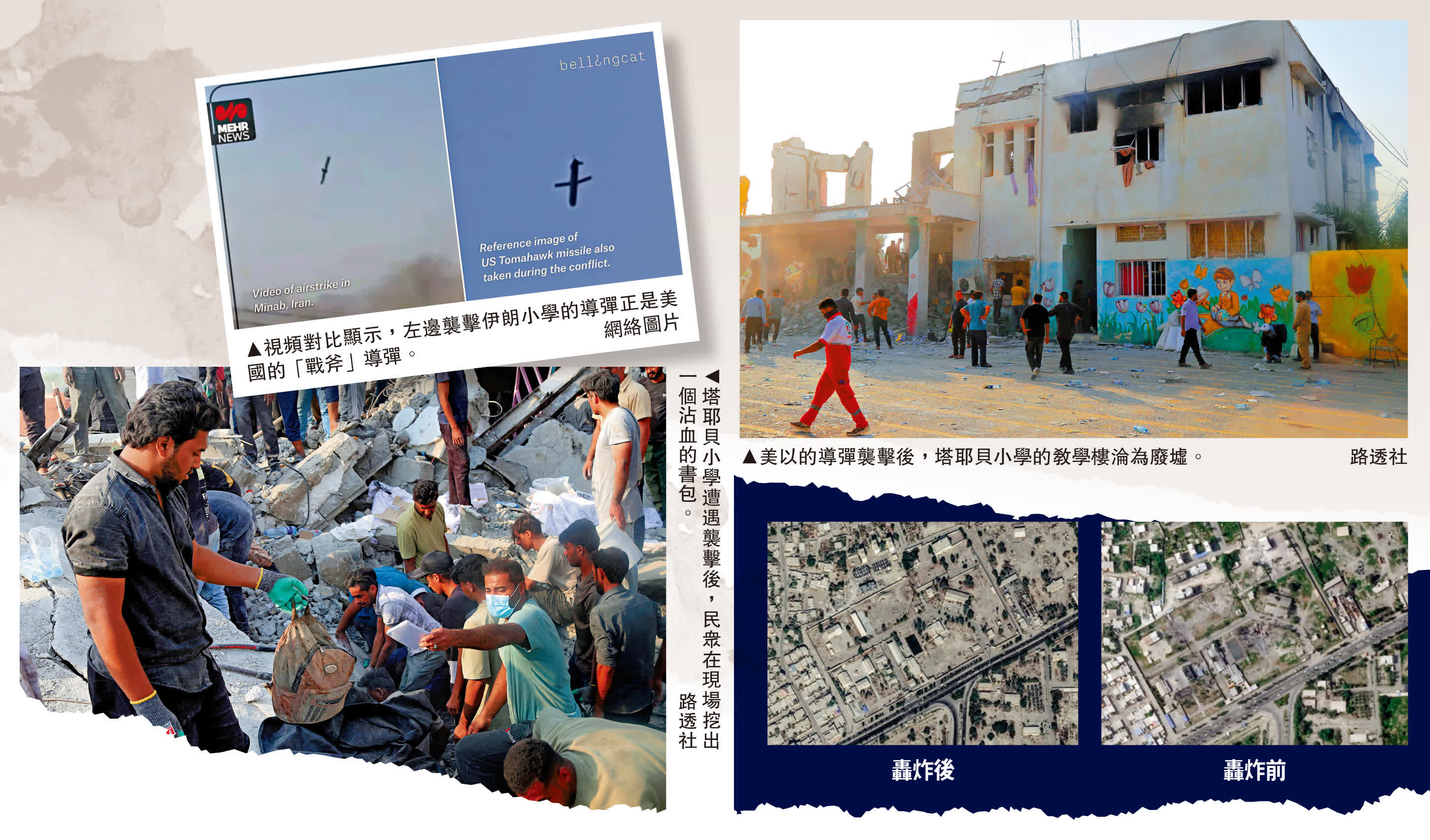 大公報綜合報道,美軍空襲伊朗小學再添新證據。根據伊朗媒體公布、由美媒再次核實的最新視頻顯示,2月28日美國和以色列對伊朗採取軍事行動的第一天,一枚「戰斧」巡航導彈擊中了伊朗南部米納卜市一所女子小學旁的軍事基地,學校與基地幾乎同時遭到襲擊。《紐約時報》稱,美軍是當前中東戰場參戰國家中唯一使用「戰斧」導彈的部隊。據伊朗媒體報道,這所小學造成175人遇難,其中大部分是小學生。面對這起悲劇,美方始終狡辯甩鍋,西方國家則集體沉默,盡顯人權問題的「雙標」。