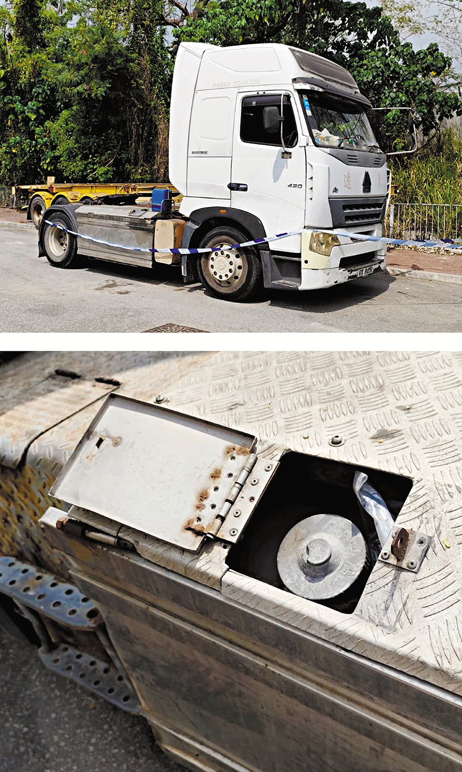 警員到場調查,發現附近有另外三輛貨車出現同樣情況,警方於是通知車主到場點算,合共損失逾3萬元油渣,列作車內盜竊案處理。