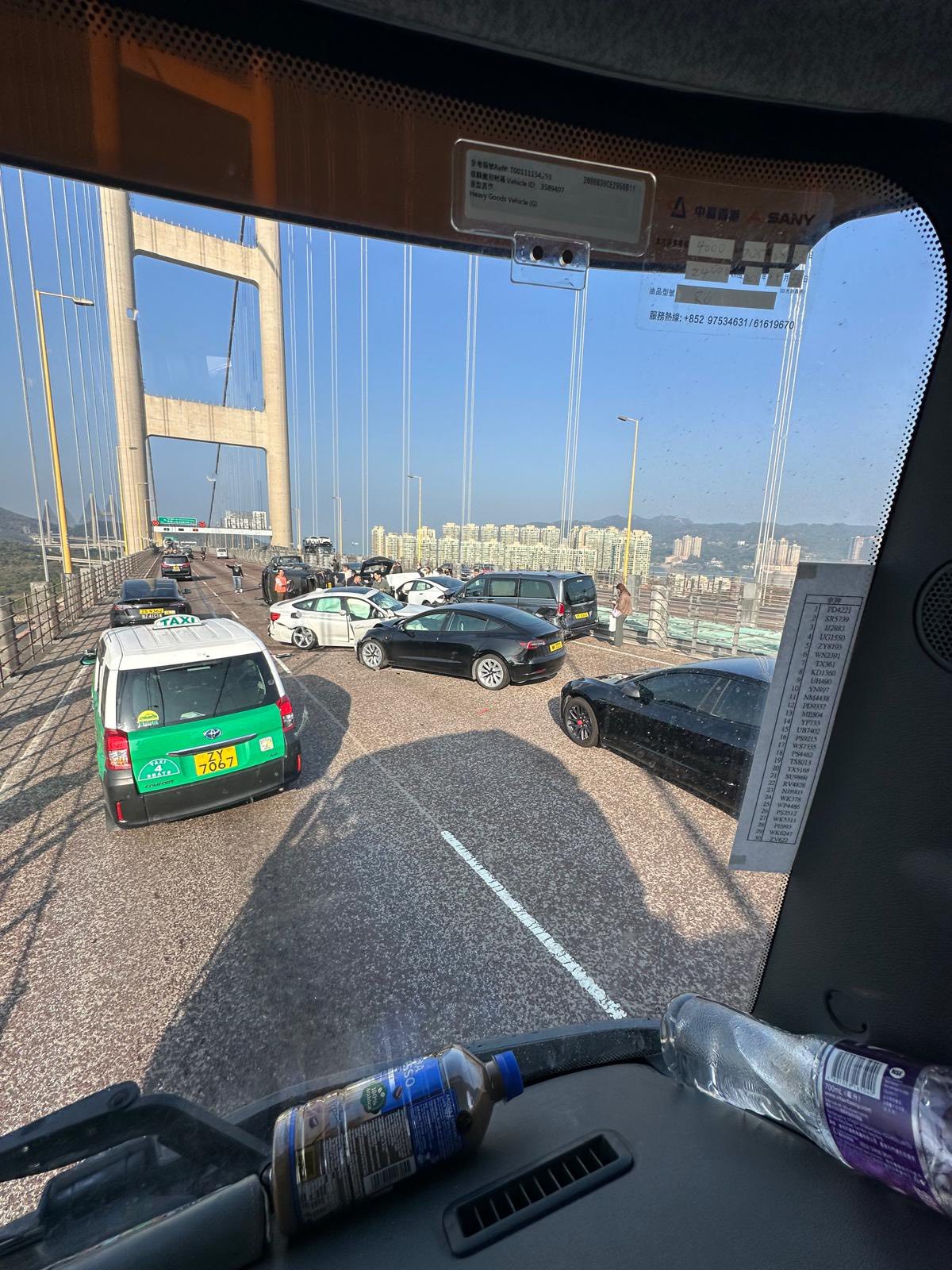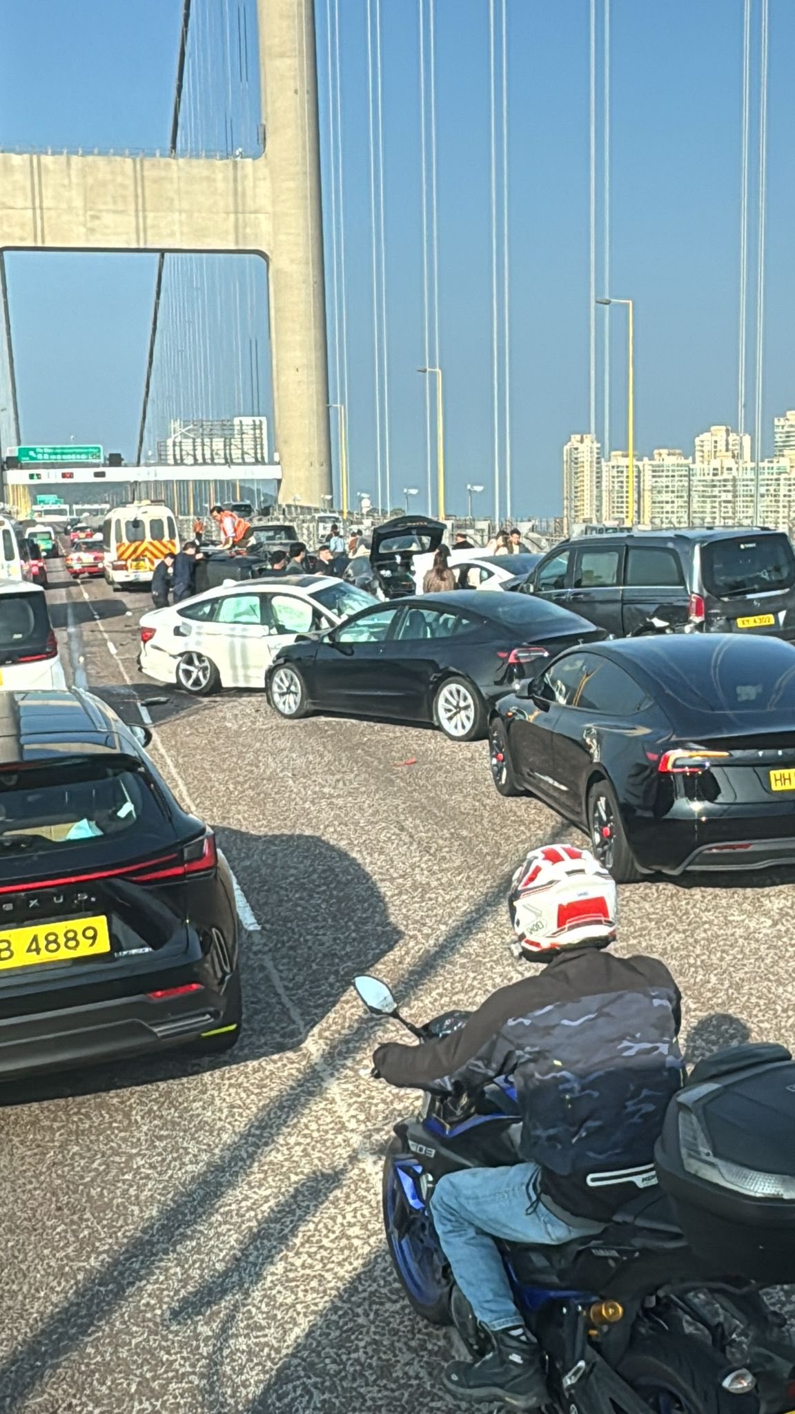 現場消息指出,青馬大橋往機場方向有至少約10車相撞。