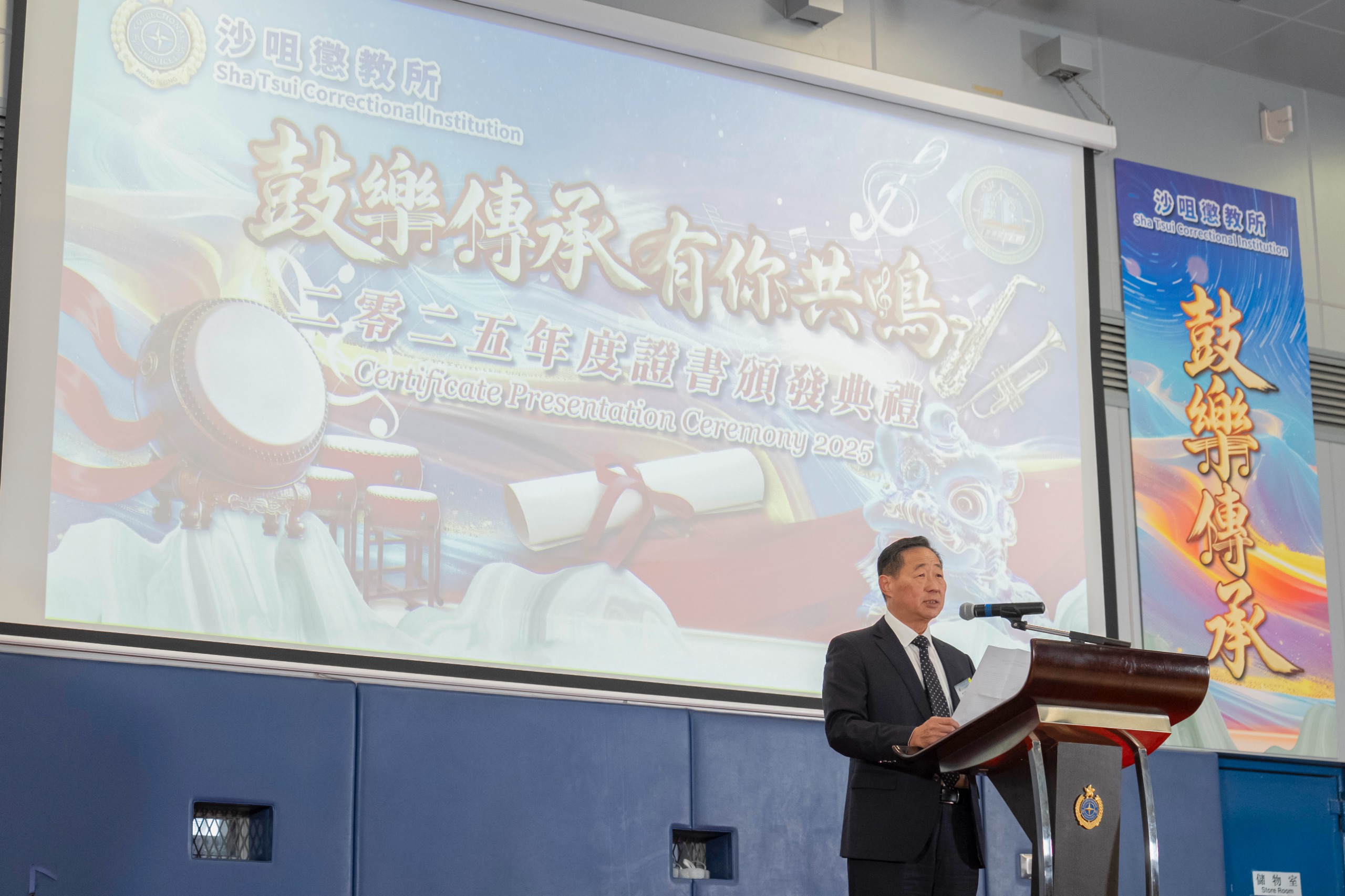 主禮嘉賓香港睦群助更生協會董事會主席趙芝勝博士表示,香港睦群助更生協會一直支持懲教署的更生工作,並設立「睦群自強不息教育基金」,為有需要的在囚人士在教育及職業訓練方面提供資助。他勉勵在囚人士只要勇敢面對困難,最終都會實現自己的理想。