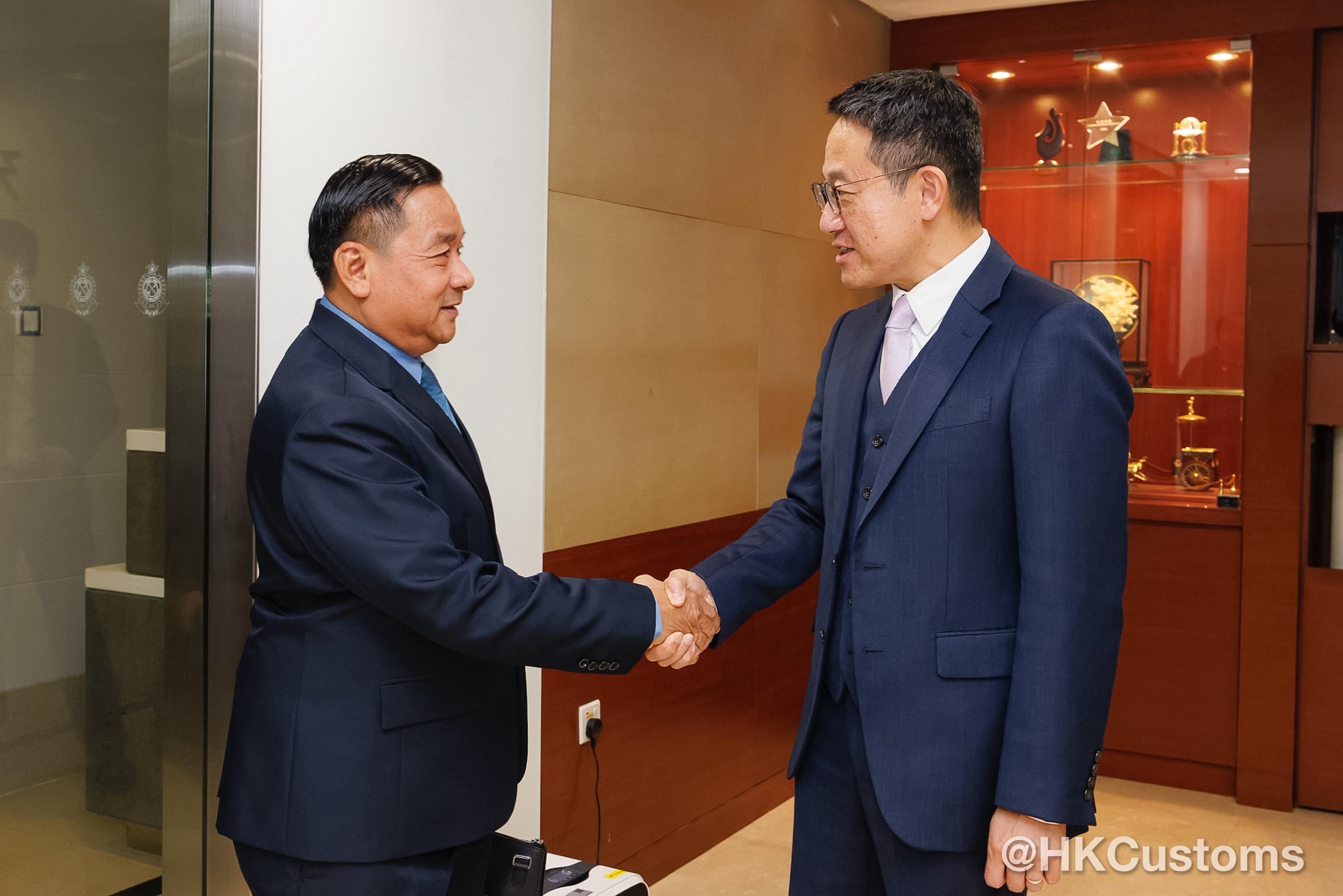 香港海關關長陳子達三月十日與老撾海關關長Phoukhaokham Vannavongxay及代表團於海關總部大樓會面,以加強雙方在海關事務上的合作和促進雙邊聯繫。