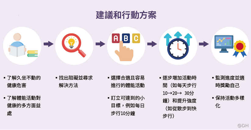 ·邀請家人、朋友或同事一同參與,例如共同完成步行挑戰、加入運動小組或隊際活動。