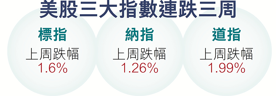 (香港文匯報記者 倪巍晨 上海報道)美國最新通脹數據雖溫和降溫,但由地緣衝突引發的原油斷供恐慌仍對美股構成壓制。截至上周五收盤,標指、納指、道指分別收跌0.61%、2.69%和0.26%,全周計依次累跌1.6%、1.26%和1.99%,三大指數皆連跌三周。