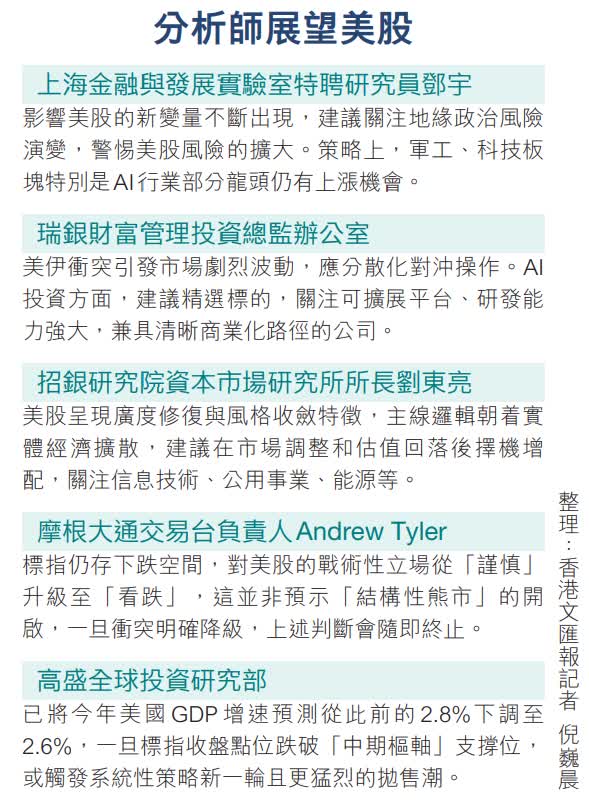 鄧宇相信,美股現階段的調整具有很強的結構性因素,影響市場的新變量不斷出現。一方面,美國和以色列針對伊朗的軍事行動短期恐難退出,這種進退兩難的局面無疑利淡美股交易情緒。另一方面,美聯儲政策面臨的挑戰越來越大,包括鮑威爾案的司法訴訟,以及新主席候選人的「空窗期」等。他直言,投資者應繼續追蹤地緣政治風險演變,警惕美股市場的風險擴大。策略上,軍工、科技板塊特別是AI行業部分龍頭仍有上漲機會,但能源、消費等板塊或面臨新一輪回調的可能,建議重點觀察地緣衝突的走向和後續解決方案。