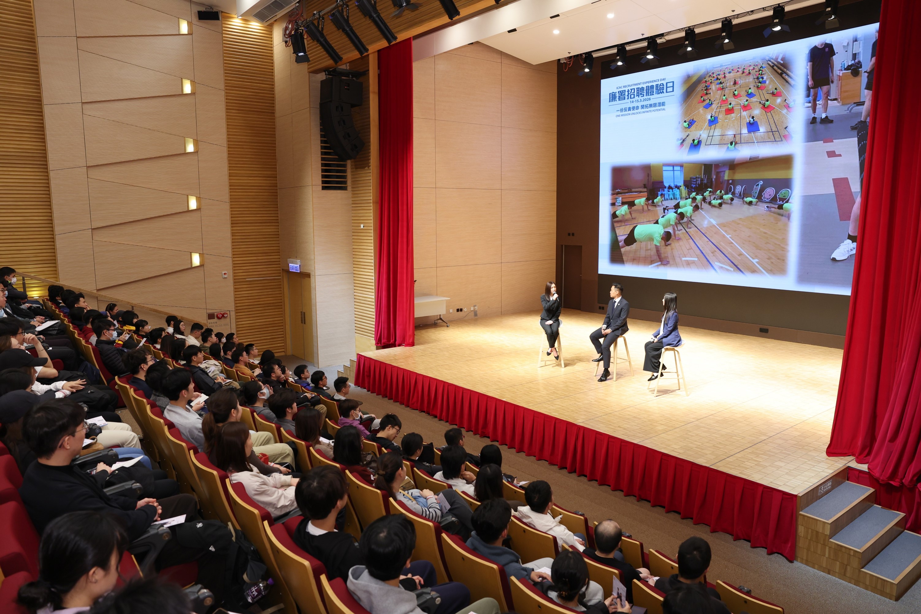 「廉署招聘體驗日2026」反應熱烈,共約1,000個參加名額已滿。是次活動透過講座、行動示範、模擬工作體驗、個案分析、互動遊戲以及設施導賞等環節,讓投考者親身體驗廉署結合專業執法、誠信教育、制度預防及全球反貪的全方位反貪策略。參加者亦可即場參與入職體能測試,通過測試者即獲認可符合本年招聘的體能要求。