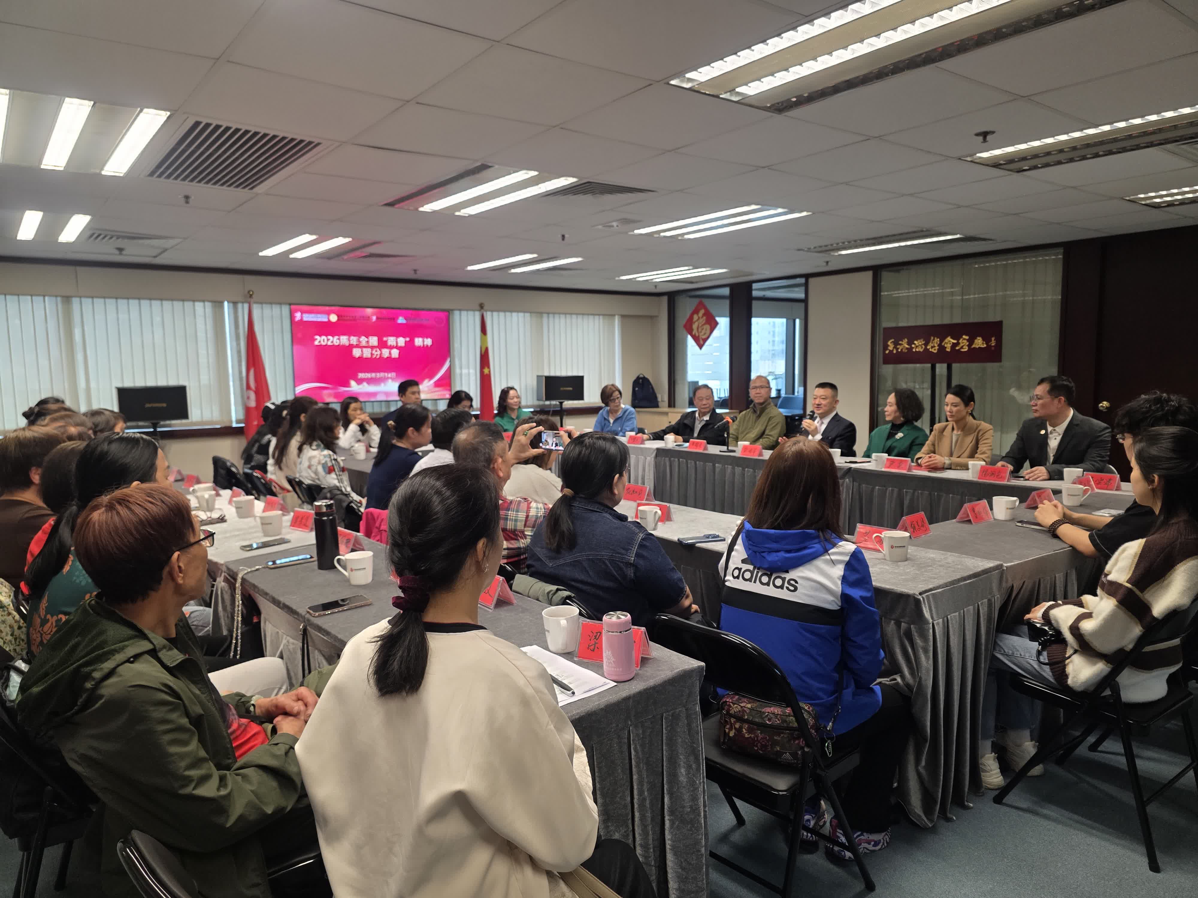 大公文匯網報道,3月14日下午,一場旨在深入學習領會今年全國「兩會」精神的分享會成功舉行。此次活動由香港淄博同鄉會、香港青年精英會、魯港姊妹學校聯合會及西貢將軍澳工商聯聯合主辦,特邀全國人大代表、香港立法會議員、香港教聯會主席黃錦良先生,以及全國政協委員、鳳凰衛視著名製片人兼主持人曾瀞漪女士擔任主講嘉賓,帶領與會者深入學習和領會「兩會」精神。