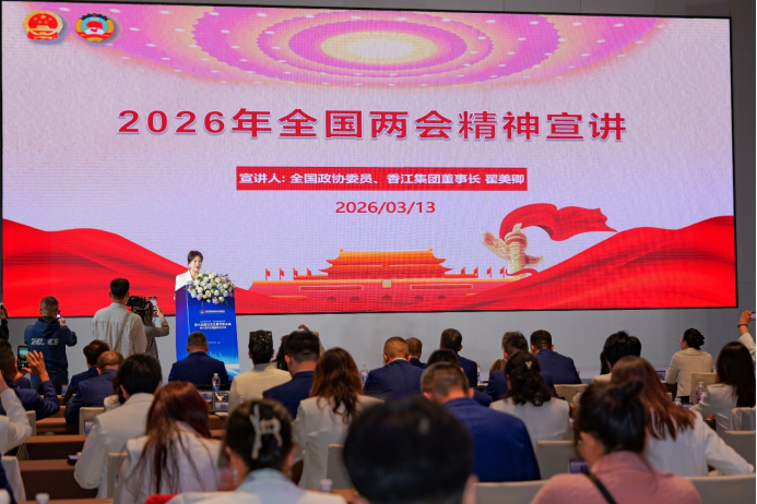 (大公文匯網記者 毛麗娟)近日,由深圳市僑商會主辦的2026全國兩會精神專題學習會在深圳召開。全國政協委員、深圳市僑商會會長、香江集團董事長翟美卿,全國政協委員、深圳市僑商會名譽主席、香港豐源實業集團董事長張佐姣作主題宣講,深入傳達全國兩會精神,聚焦「十五五」規劃開局與新質生產力發展。