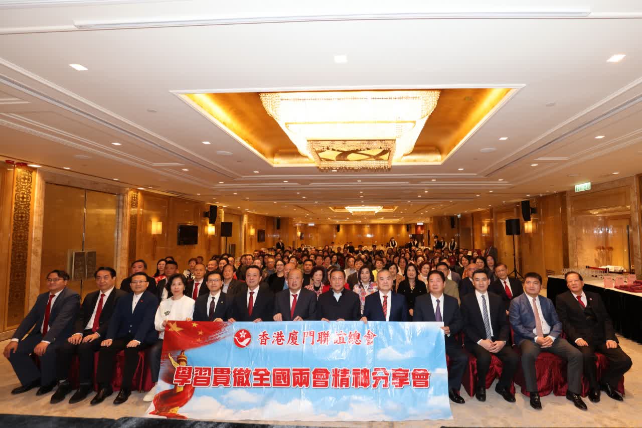 3月14日,香港廈門聯誼總會在香港皇朝會隆重舉辦全國兩會精神宣講會暨春茗活動,多位港區全國人大代表、全國政協委員向逾百名閩籍在港企業家、鄉親分享今年出席兩會的體會。他們表示,今年全國兩會意義深遠,為香港發展指明方向、注入動力。將帶領閩籍鄉親深入學習領會兩會精神,主動融入國家發展大局,凝聚鄉情力量,共促廈港融合、助力香港由治及興。
