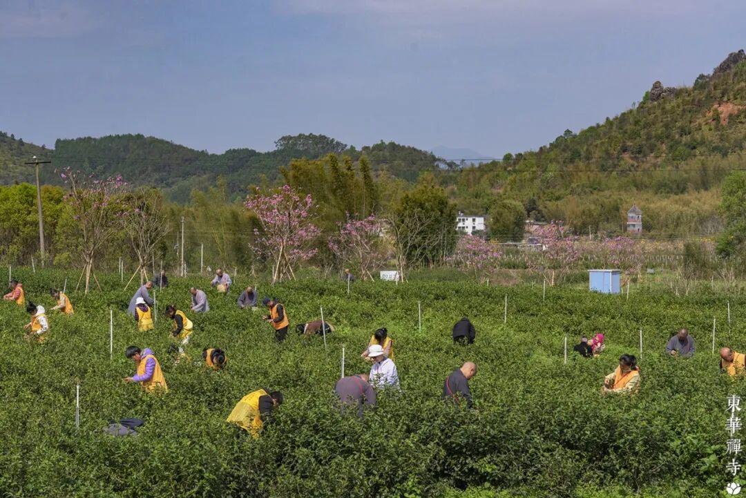 驚蟄一過,萬物生發。東華禪寺的茶園裏,僧人們的手指在茶樹枝頭輕輕跳躍,採下的不僅是春茶,更是一份千年傳承的清凈家風,是「五大文化」中「農禪文化」的生動延續,是「三園六館」體系中最質樸的修行日常。