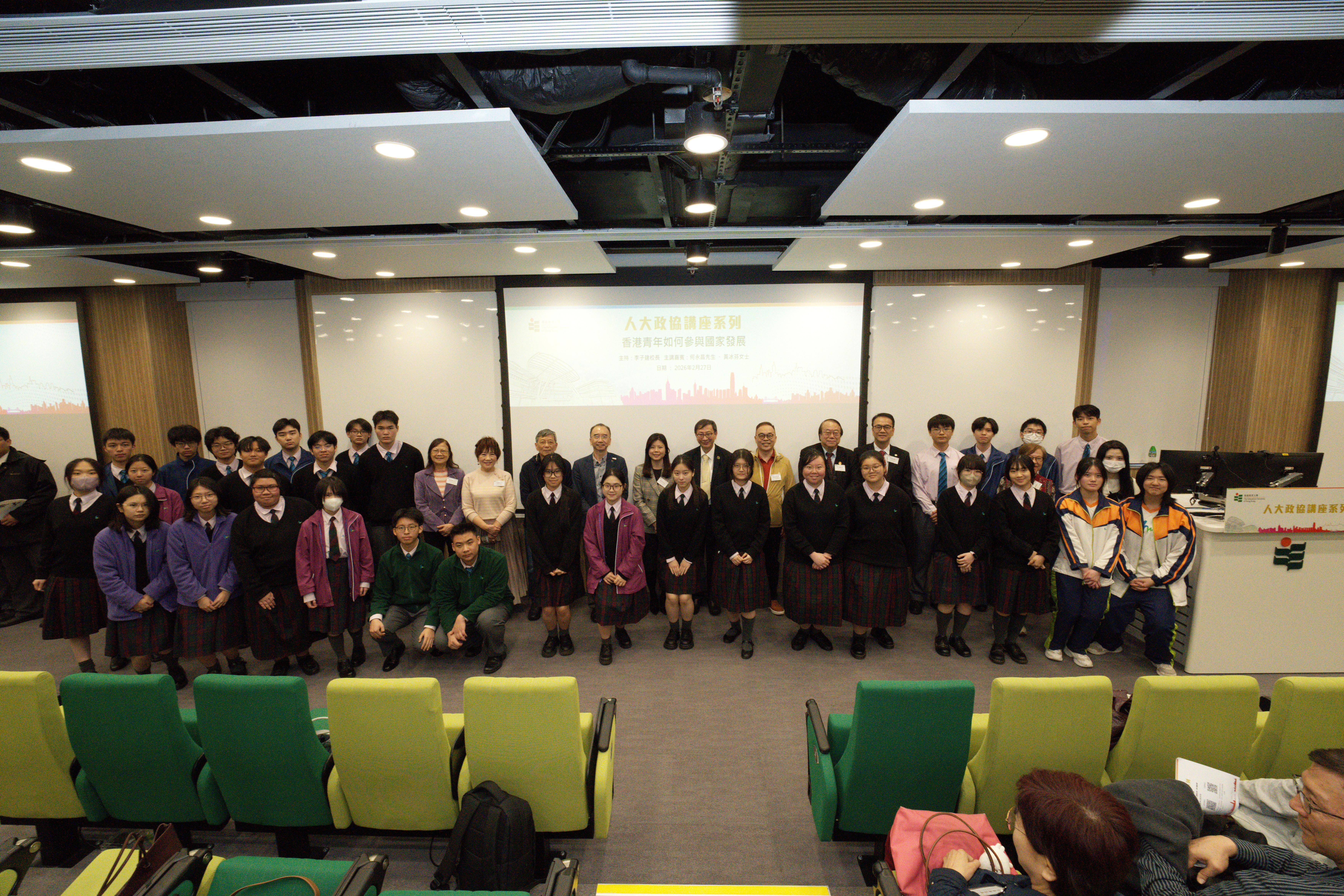 「人大政協講座系列」(2025-26)由教大學校協作及體驗事務處主辦,邀請不同人大代表和政協委員走進校園,就不同專業範疇與師生交流分享。是次講座出席的包括教大學校協作及體驗總監甘偉強博士和副總監區婉儀女士,以及學校協作及體驗事務處專業顧問張勇邦先生等。活動亦邀請了五邑司徒浩中學、漢華中學、佛教茂峰法師紀念中學的師生參與。