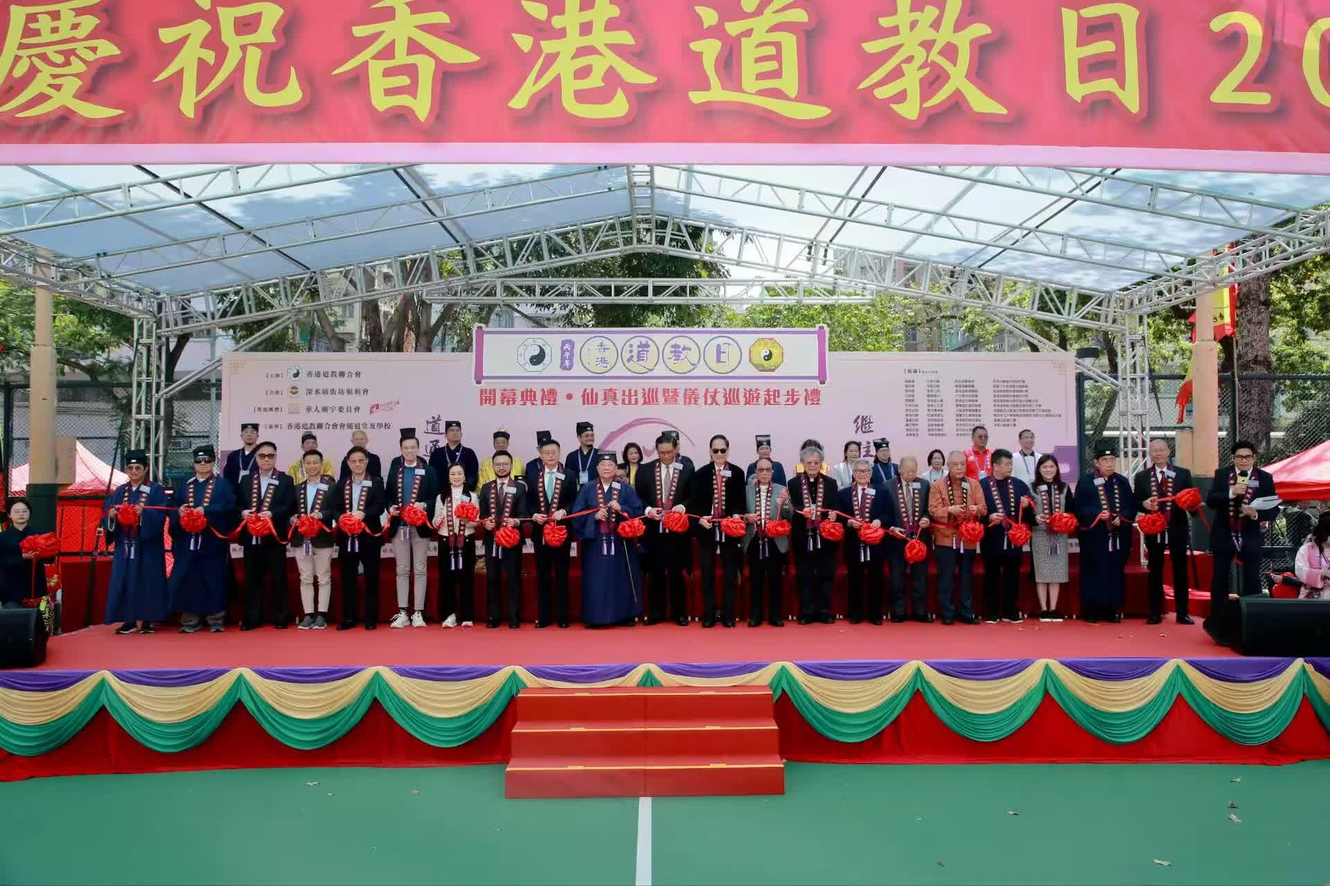 據香港道教聯合會梁德華主席介紹,開幕典禮暨巡遊起步禮榮幸邀得民政及青年事務局副局長梁宏正、中央人民政府駐香港特別行政區聯絡辦公室協調部副部長徐小林擔任主禮嘉賓。新界鄉議局副主席林偉強、深水埗民政事務專員王浩宇、深水埗街坊福利會理事長梁巨海,立法會議員林振升、陳凱欣、梁文廣、陳祖光,澳門道教協會會長吳炳鋕、福建省道教協會副會長王寧,以及香港佛教聯合會執行副會長兼司庫何德心、天主教宗教聯絡委員會主席周景勳、孔教學院常務副院長高百鳴、中華回教博愛社副主席司徒亮、東華三院副主席楊燕芝等社會各界賢達擔任典禮嘉賓。道教日活動大使安德尊先生擔任大會司儀。本港各大道堂宮觀代表及地區街坊會首長亦出席,共賀盛典。