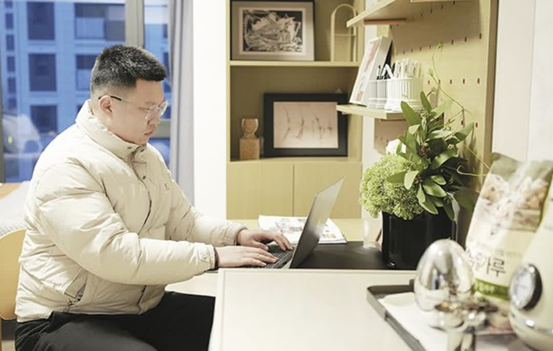 他說,入住前還擔心需要花時間布置,沒想到公寓的精裝標準遠超預期。「每月花個一千元(人民幣,下同)左右的租金就可以住上這樣一套溫馨的房子,我覺得特別幸福。」廚房檯面上,抽油煙機、燃氣灶、微波爐等廚具齊全,回家就能烹飪;衞生間裏,熱水器、洗衣機等一體化配置,滿足日常所需。更驚喜的是,公寓還預裝了高速網絡和智能門鎖,「安全感和便捷度直接拉滿」。