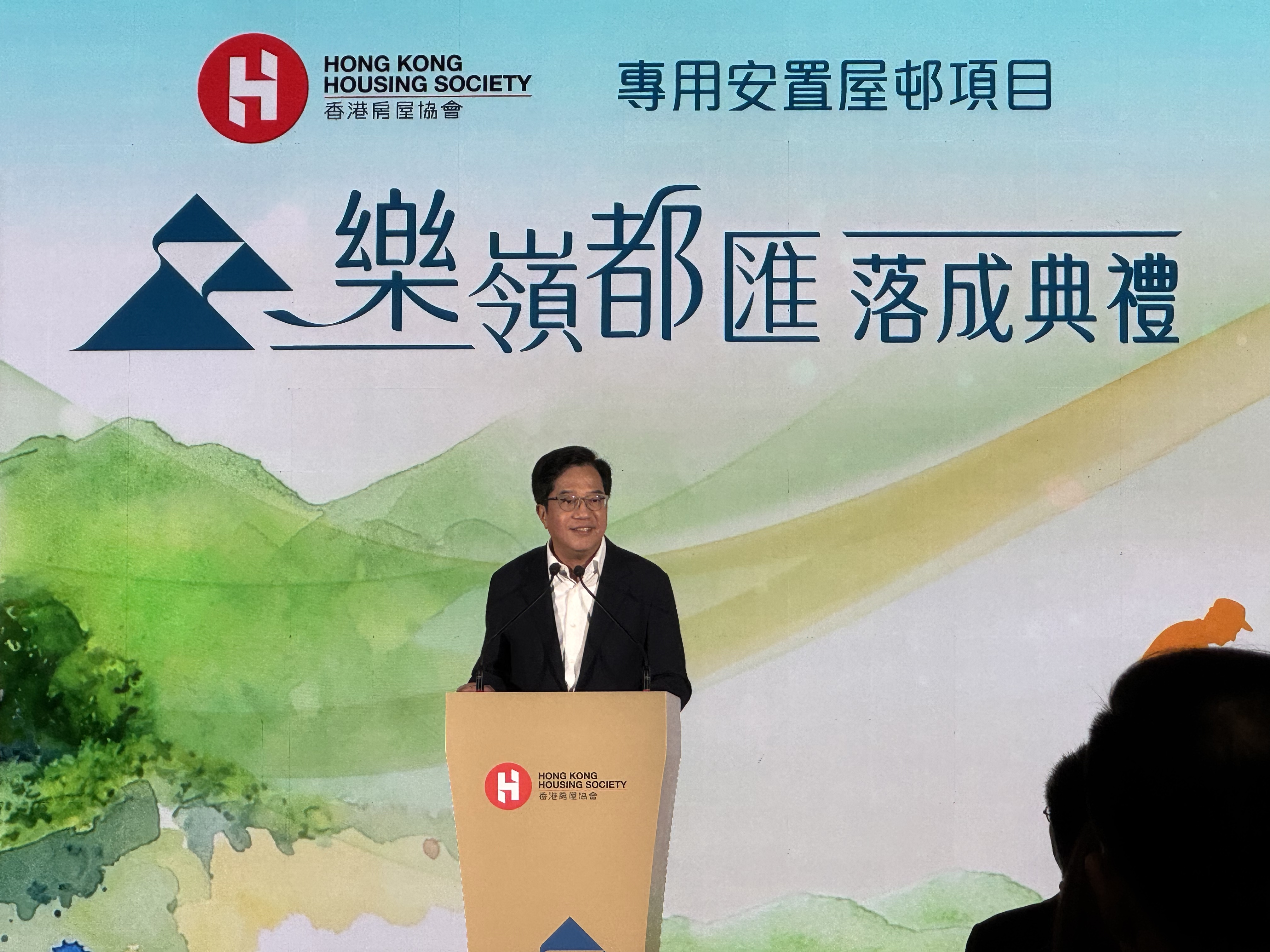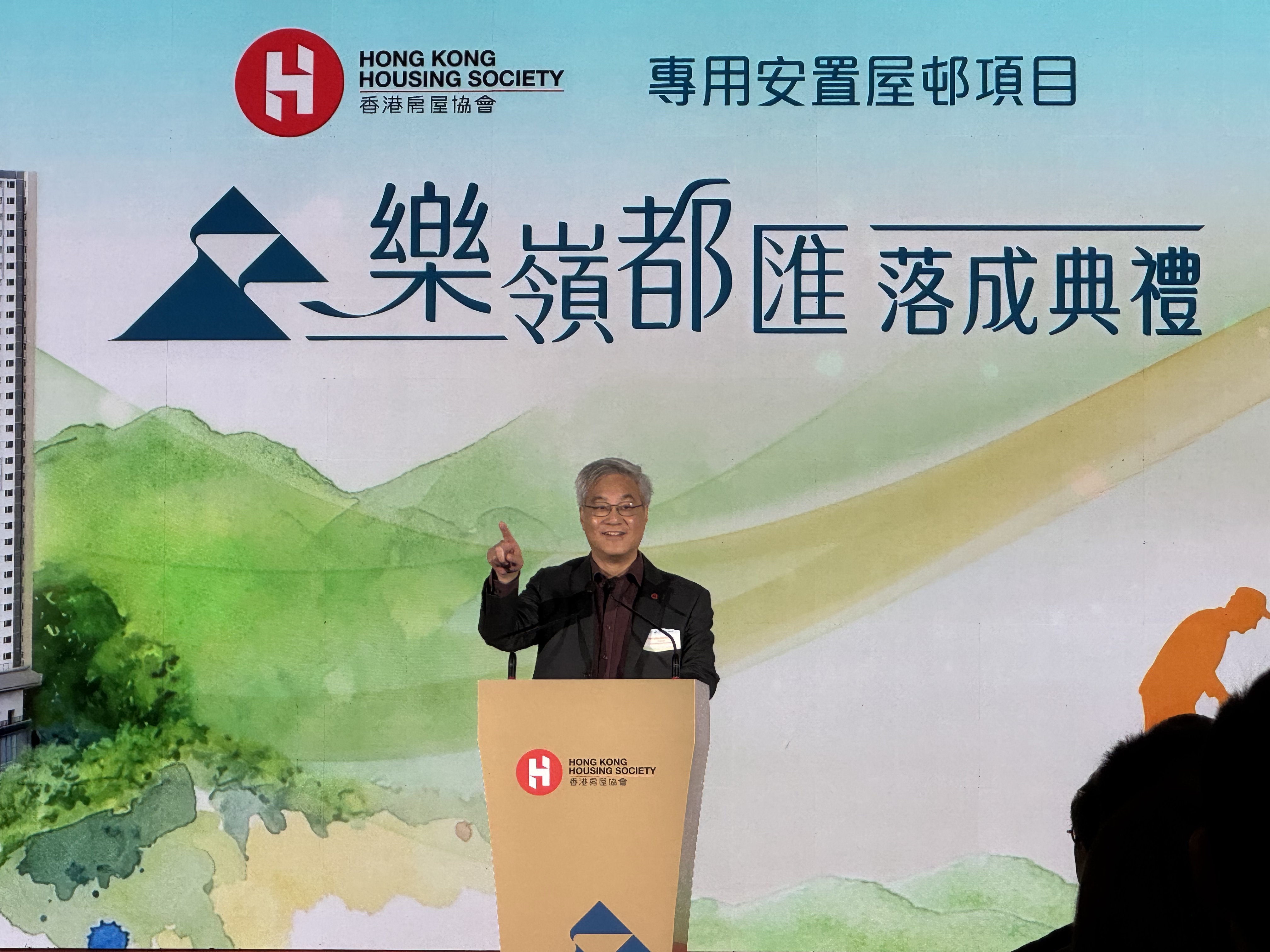 房協主席凌嘉勤致辭時指出,「樂嶺都匯」項目有兩大核心特點,一是房協與政府首個合作的專用安置屋邨項目,二是香港首個以跨代共融社區理念規劃建設的屋邨。他表示,房協將繼續支持政府北部都會區發展,推進專用安置屋邨項目,助力拆遷居民實現無縫入住。