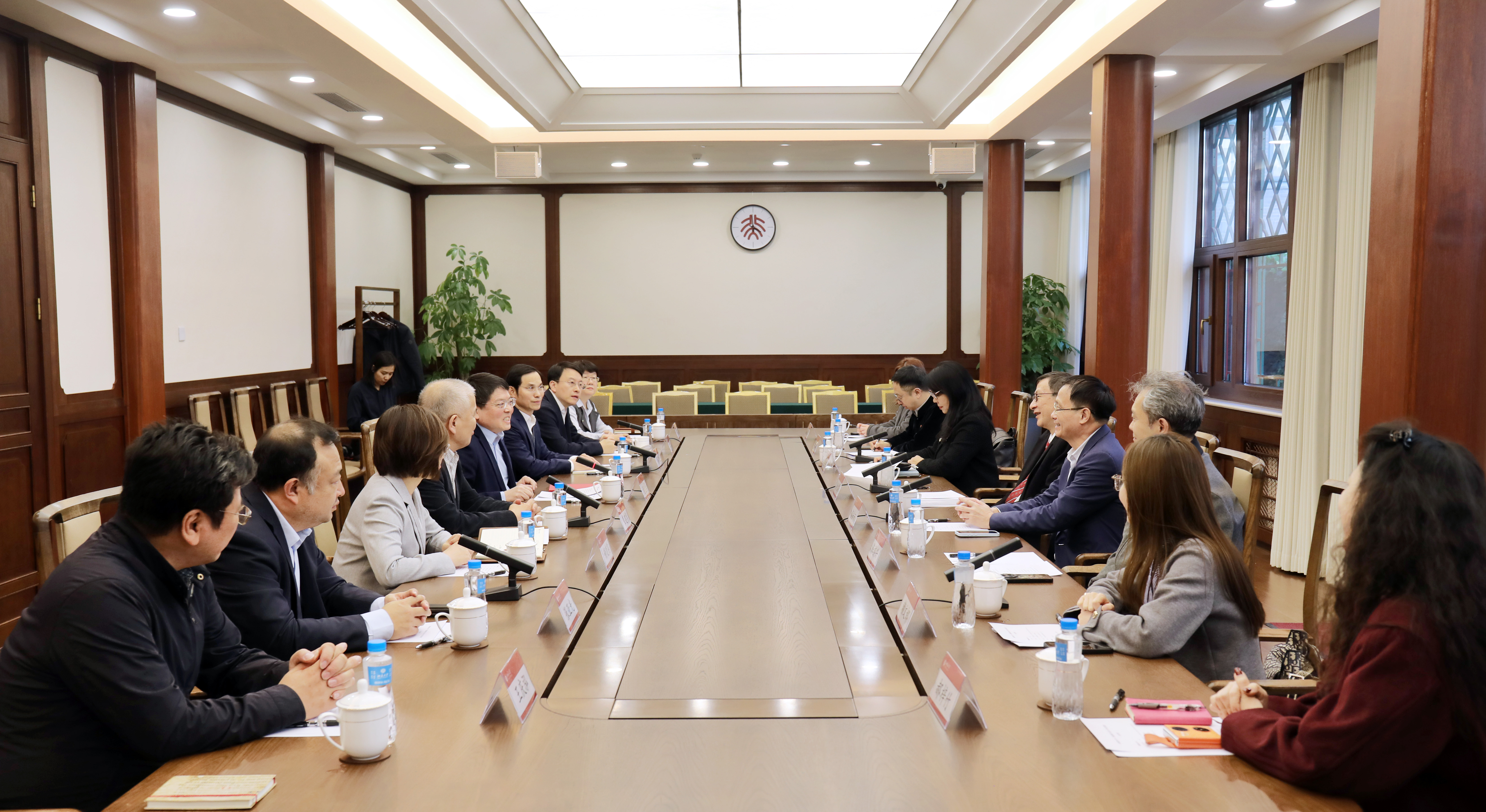 3月11日下午,代表團首先拜訪北京師範大學,與校長于吉紅教授及副校長陳興教授為首的北師大團隊進行友好會談。作為同樣以師範教育為核心特色的頂尖學府,教大與北京師範大學在教師教育、科研合作、人才培養與師生互訪等方面長期保持廣泛而深入的合作。此次會面中,于吉紅校長表示願充分發揮北師大「一體兩翼」的辦學優勢,與香港教大積極探索合作新模式,助力粵港澳大灣區教育高品質發展;而李子建校長則期待兩校充分發揮各自學科特色與優勢,在國家安全、中華文化、人工智能及新媒體等領域,通過多元合作模式展開更緊密的互動。雙方除續簽既有合作協議外,就未來合作方向與合作新機進行深入交流與探討。