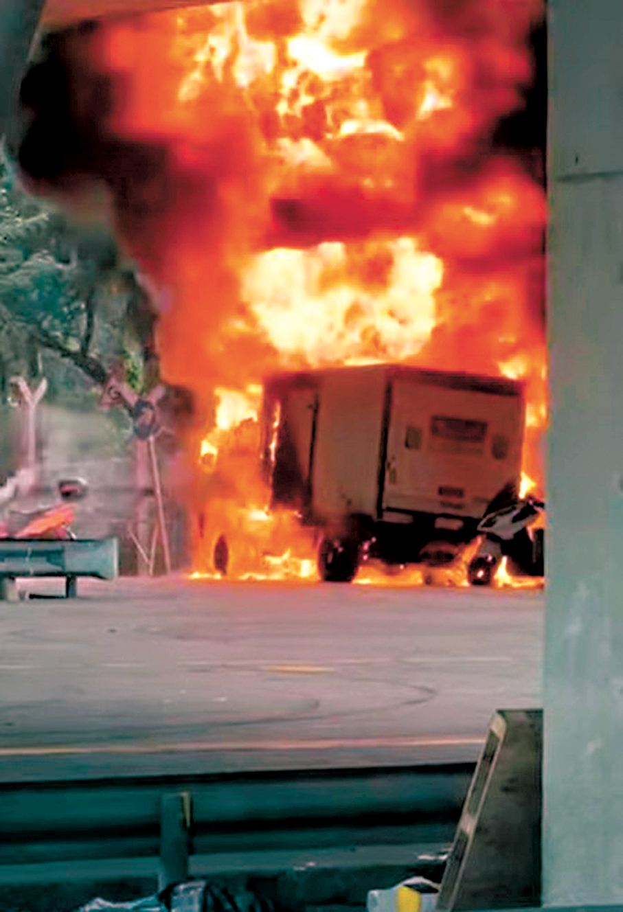 (香港文匯報 記者 蕭景源)繼今年2月長沙灣有非法改裝為流動非法加油站的貨車發生大火,昨日(3月17日)葵涌貨櫃碼頭南路近3號迴旋處一個露天停車場內亦發生同類火警,濃煙衝天一度遮蔽3號幹線橋面。消防處在焚毀的輕型貨車內發現兩個最多可存放約2,000公升燃油的油缸,相信涉及非法流動加油站,正通緝女車主。消防處指,火警現場位於港鐵路段及3號幹線附近,對環境及基礎設施構成嚴重威脅,亦可能影響駕駛人士視線,增加發生交通意外風險。近期在市區亦發現這類不符消防安全的非法流動加油站,一旦發生火警可對市民生命財產安全造成重大風險,呼籲市民切勿光顧,海關指出買與賣私油均違法。