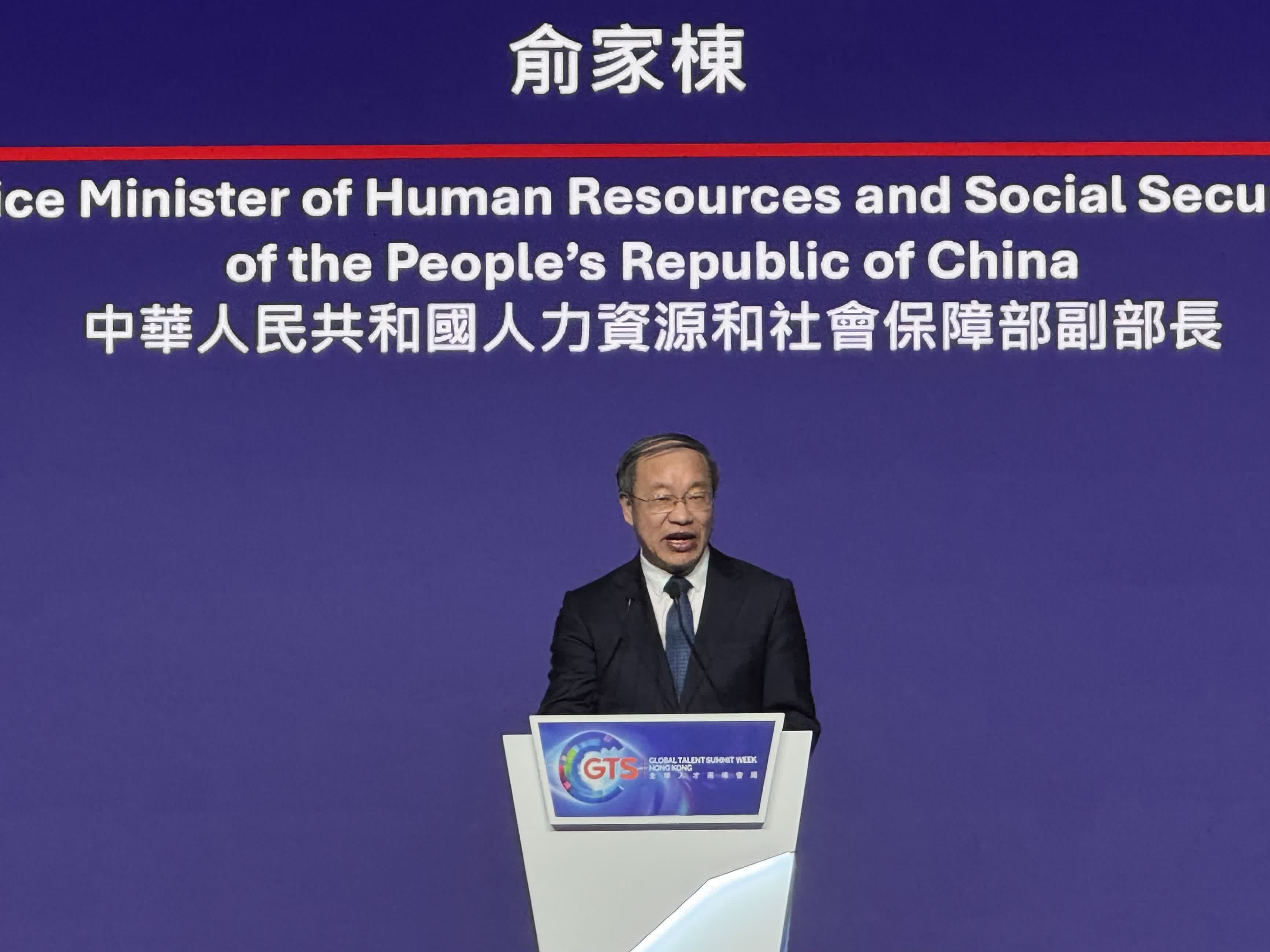 國家人力資源和社會保障部副部長俞家棟致辭時對香港融入國家發展大局、參與粵港澳大灣區建設、經濟、社會的努力和成績給予了肯定。他表示,香港高度重視教育、科技、人才事業一體發展,人才競爭力躍升亞洲第一、全球第四。